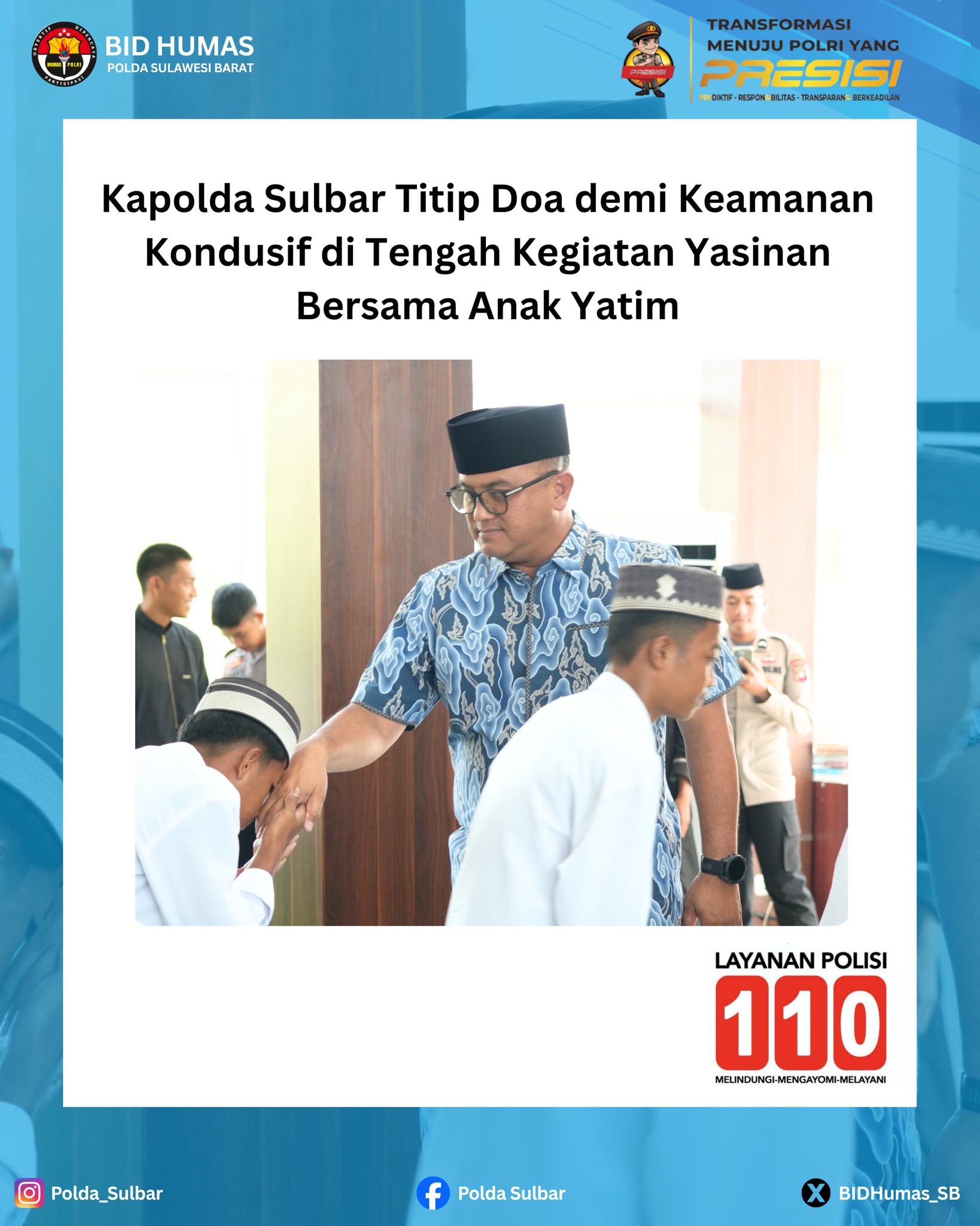 Kapolda Sulbar Titip Doa demi Keamanan Kondusif di Tengah Kegiatan Yasinan Bersama Anak Yatim