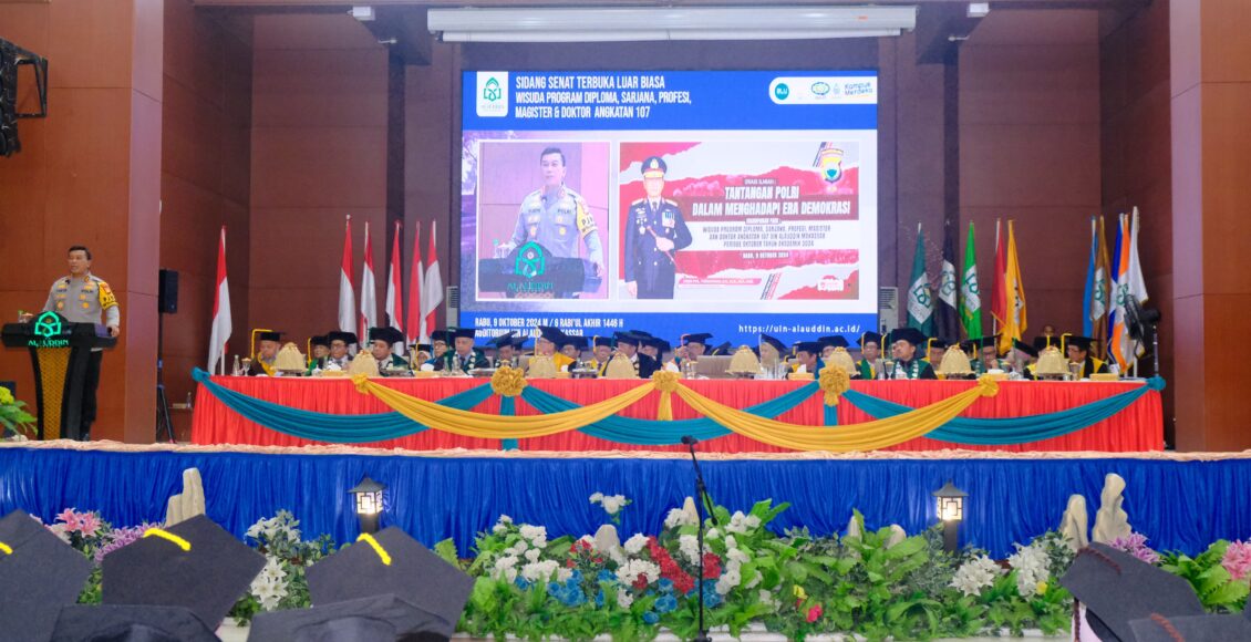 SULSEL,ikagawanews.id – Kapolda Sulsel Irjen Pol Yudhiawan menyampaikan orasi ilmiah pada Wisuda Program Diploma, Sarjana Profesi, Magister dan Doktor Angkatan 107 Universitas Islam Negeri (UIN) Alauddin Makassar, Rabu (09/10) di Gedung Auditorium Kampus UIN, Kab. Gowa.