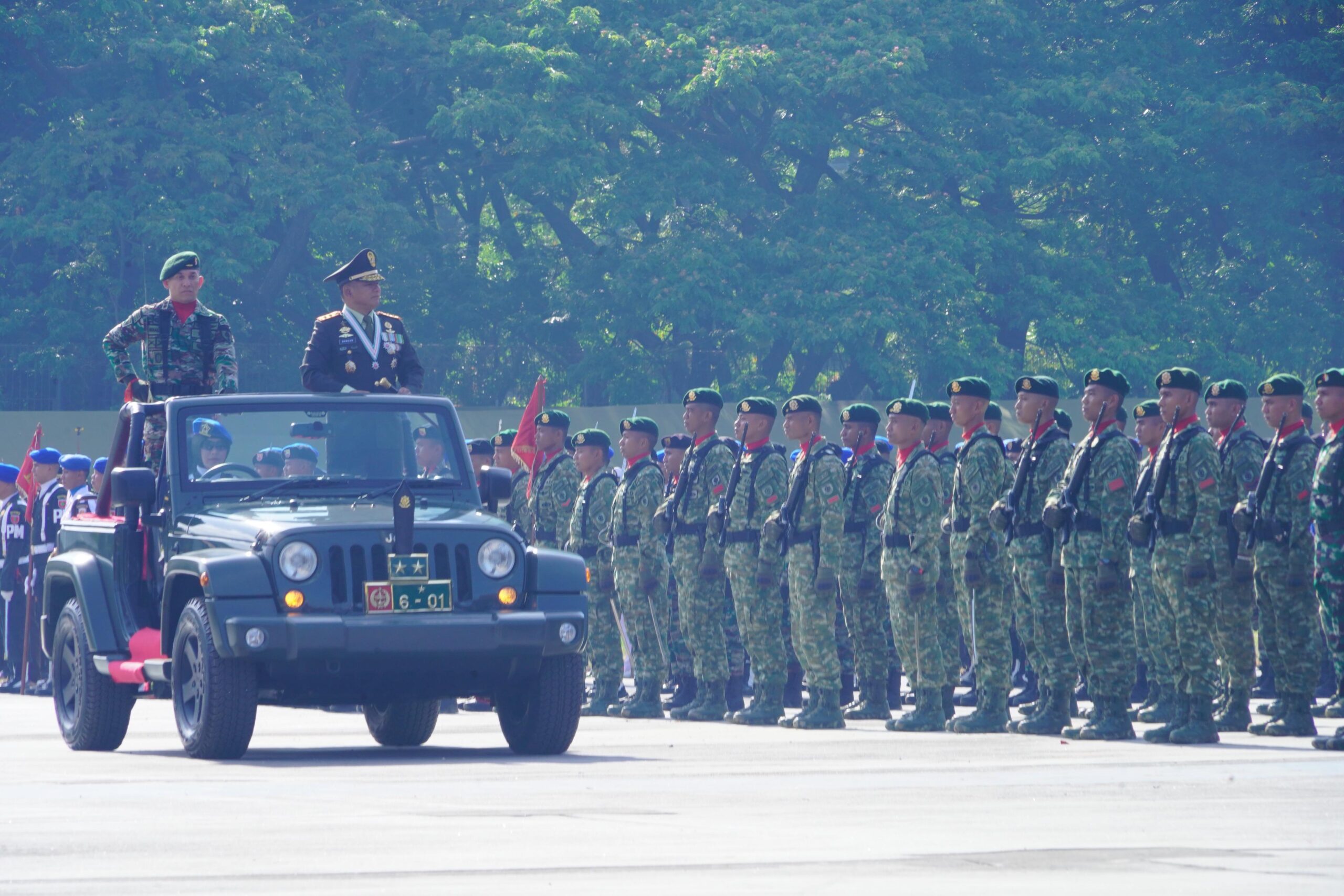 Upacara berlangsung khidmat, Panglima Divisi Infanteri 3 Kostrad, Mayjen TNI Bangun Nawoko, S.I.P., bertindak sebagai Inspektur Upacara. Dalam amanatnya, menyampaikan pentingnya tema HUT TNI kali ini sebagai cerminan cita-cita besar TNI dalam menjadi prajurit yang profesional, responsif, integratif, modern, dan adaptif.