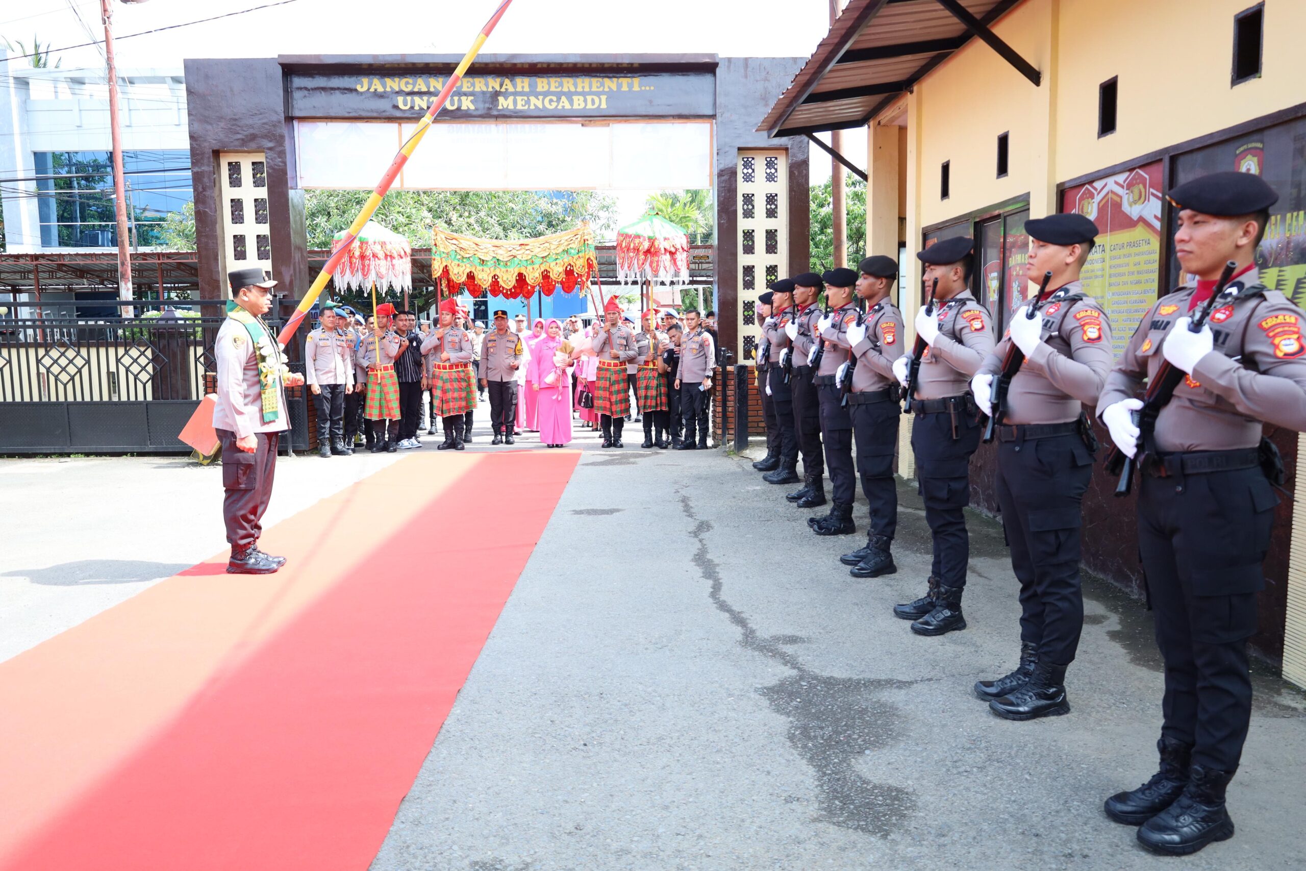 Kedatangan Kapolda Sulsel disambut dengan upacara adat berupa pengalungan Salempang sarung oleh Kapolres Takalar AKBP Gotam Hidayat, S.I.K., M.Si, serta pemberian buket bunga kepada Ny. Yunita Yudhiawan oleh Ketua Bhayangkari Cabang Takalar Ny. Dewi Gotam Hidayat. Acara dilanjutkan dengan Jajar Kehormatan yang dilakukan oleh personel Polres Takalar.