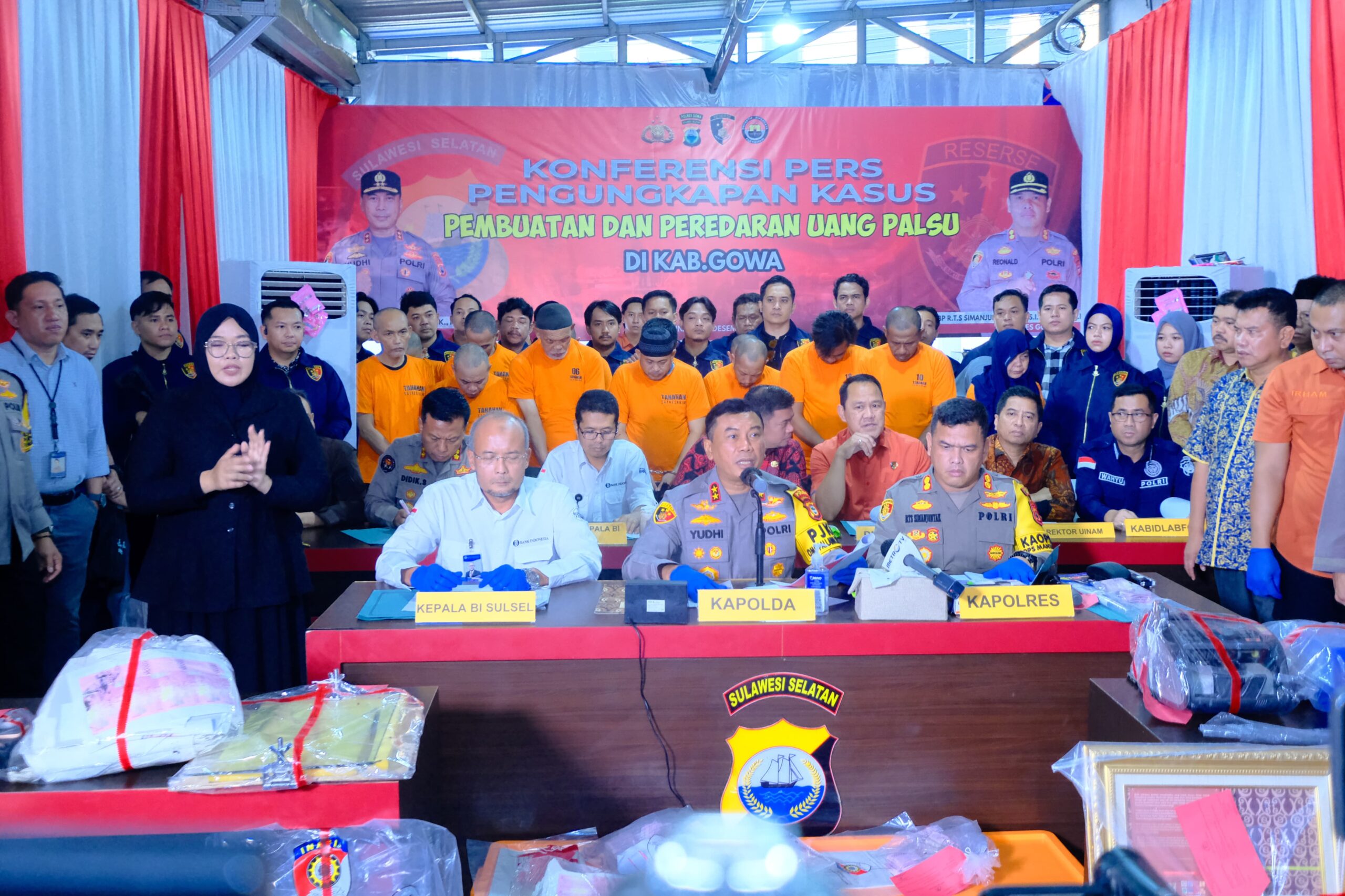 Kasus pabrik uang palsu ini mencuat setelah penggerebekan dilakukan di gedung perpustakaan salah satu Kampus Perguruan Tinggi Makassar. Dari hasil pengembangan penyidikan, Polres Gowa menetapkan 17 orang sebagai tersangka.