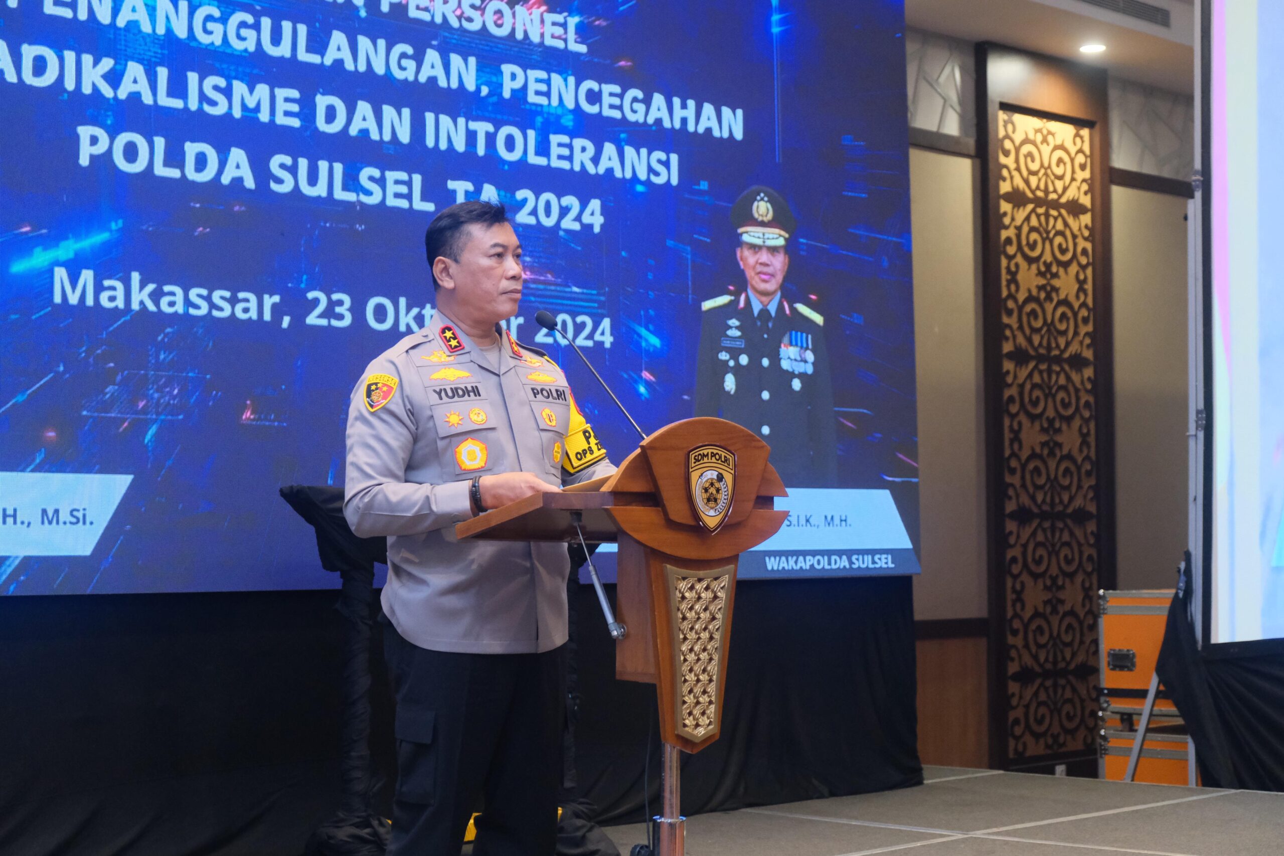 SULSEL, ikagawanews.id – Kepala Kepolisian Daerah Sulawesi Selatan (Kapolda Sulsel), Irjen Pol. Yudhiawan, S.H., S.I.K., M.H., M.Si., memimpin kegiatan pembinaan personel Polri dalam rangka penanggulangan dan pencegahan radikalisme serta intoleransi di lingkungan Polda Sulsel, Rabu, (23/10/2024). Kegiatan yang berlangsung di Ballroom Balla Lompoa Hotel Harper, Makassar, ini turut dihadiri oleh Wakapolda Sulsel, Brigjen Pol. Nasri, S.I.K., M.H., serta sejumlah pejabat utama Polda Sulsel.