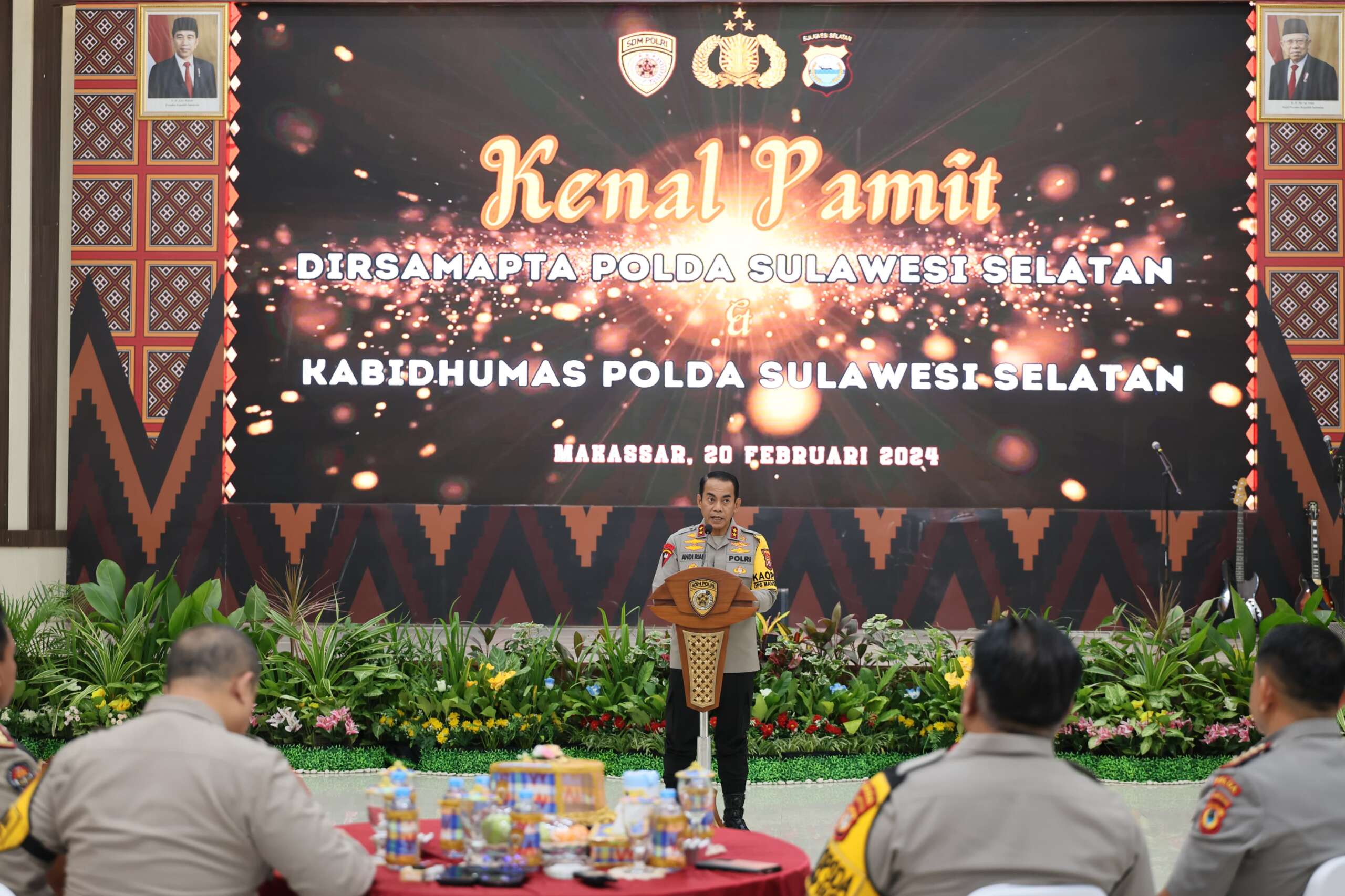 Adapun pejabat yang melaksanakan serah terima jabatan, Dirsamapta Polda Sulsel kini dijabat oleh Kombes Pol. Setiadi Sulaksono S.I.K., M.H. menggantikan Kombes Pol Yusuf Naibaho, S.H., M.H.