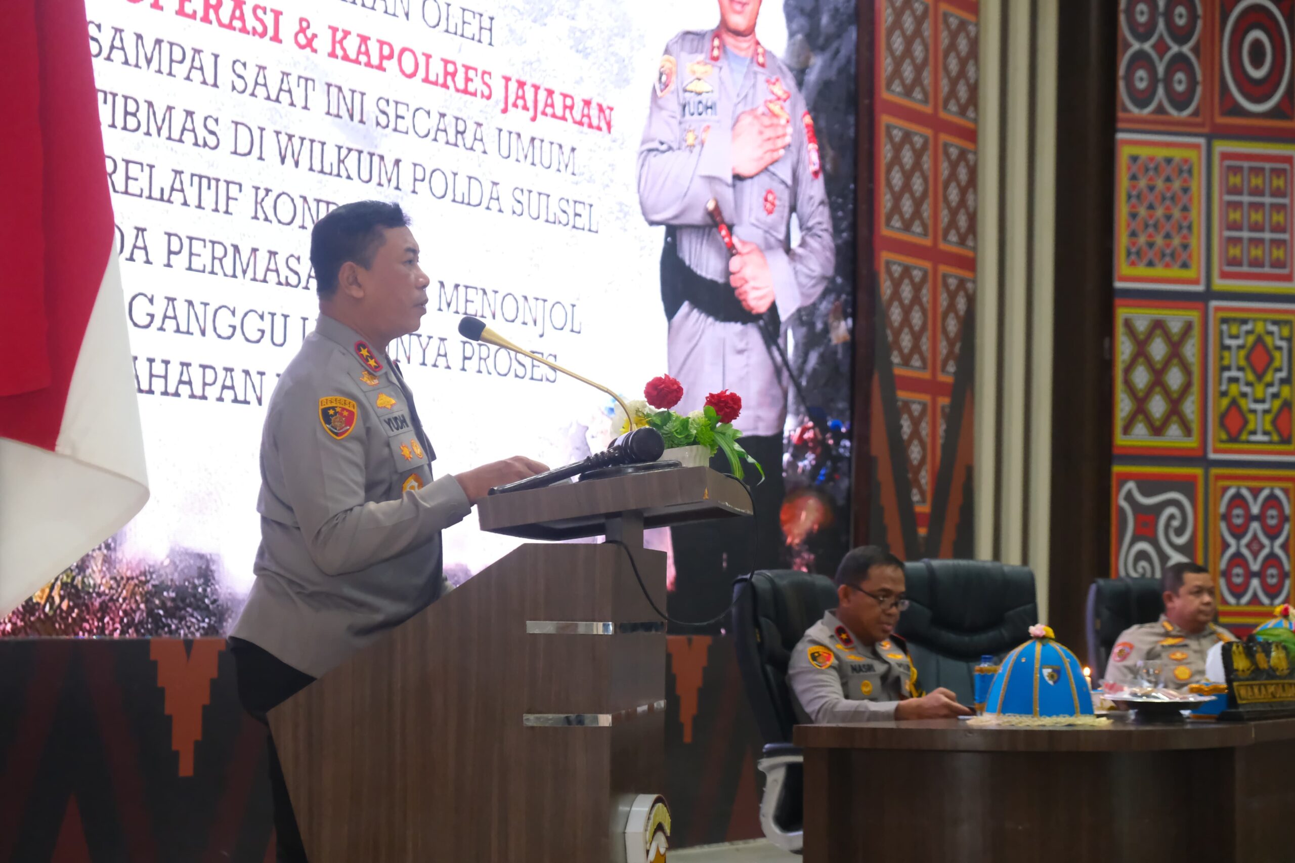 Irjen Pol. Yudhiawan menekankan bahwa kinerja jajaran Polda Sulsel harus mampu mencapai indikator nol komplain (Zero Complain) dan terus menjaga opini wajar tanpa pengecualian (WTP) demi mewujudkan pemerintahan yang bersih dan bebas dari KKN.