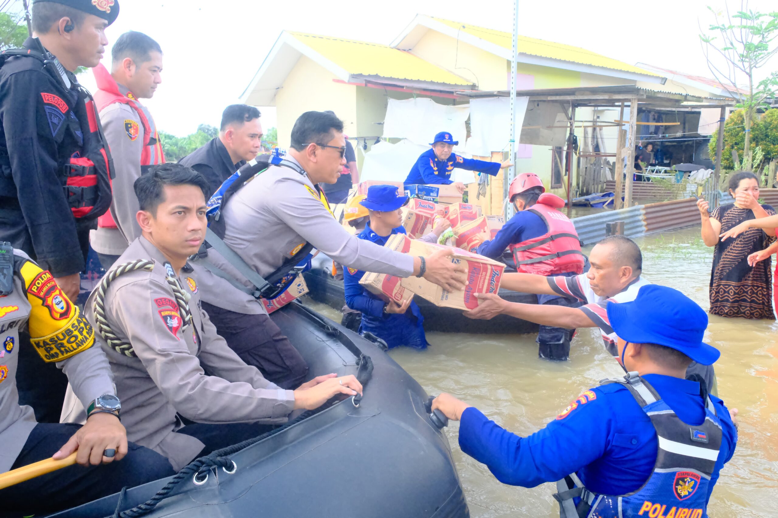 Setelah meninjau dan menyerahkan bantuan di Masjid Raya Baruga Antang, Kapolda dan rombongan melanjutkan kunjungan ke lokasi banjir di Blok 8 dan Blok 10 Perumnas Antang, Kelurahan Manggala. Setibanya di lokasi, rombongan menyeberang menggunakan perahu karet milik Polairud dan Basarnas untuk menyalurkan bantuan kepada warga yang terdampak.