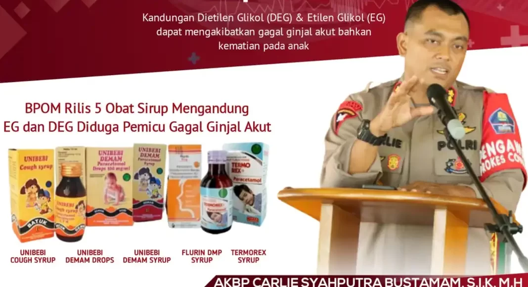 Sesuai Telegram Kapolri terkait jenis obat-obatan diperintahkan ditarik dari peredaran oleh Kementrian Kesehatan Republik Indonesia (Kemenkes RI) terkait hasil temuan jenis obat-obatan tersebut dapat mengakibatkan gagal ginjal akut bagi anak, bahkan dapat meninggal dunia dampaknya.