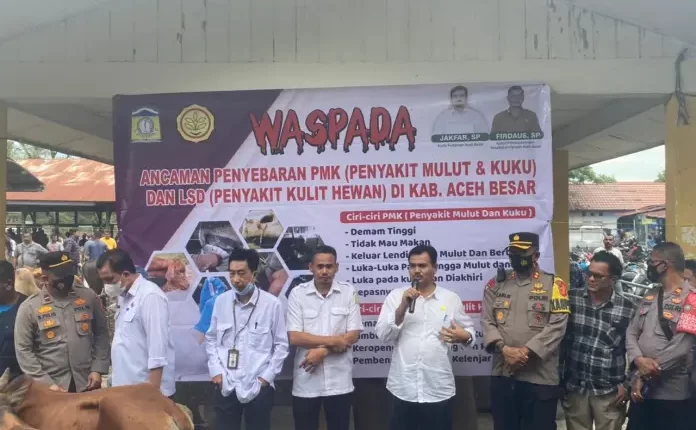Kapolres yang di dampingi Kadis Pertanian Kabupaten Aceh Besar Jakfar,SP serta unsur terkait lainnya terus memantau dan mengsosialisasikan telah kepada masyarakat tentang Ancaman Penyebaran PMK (Penyakit Mulut & Kuku) pada Sapi.