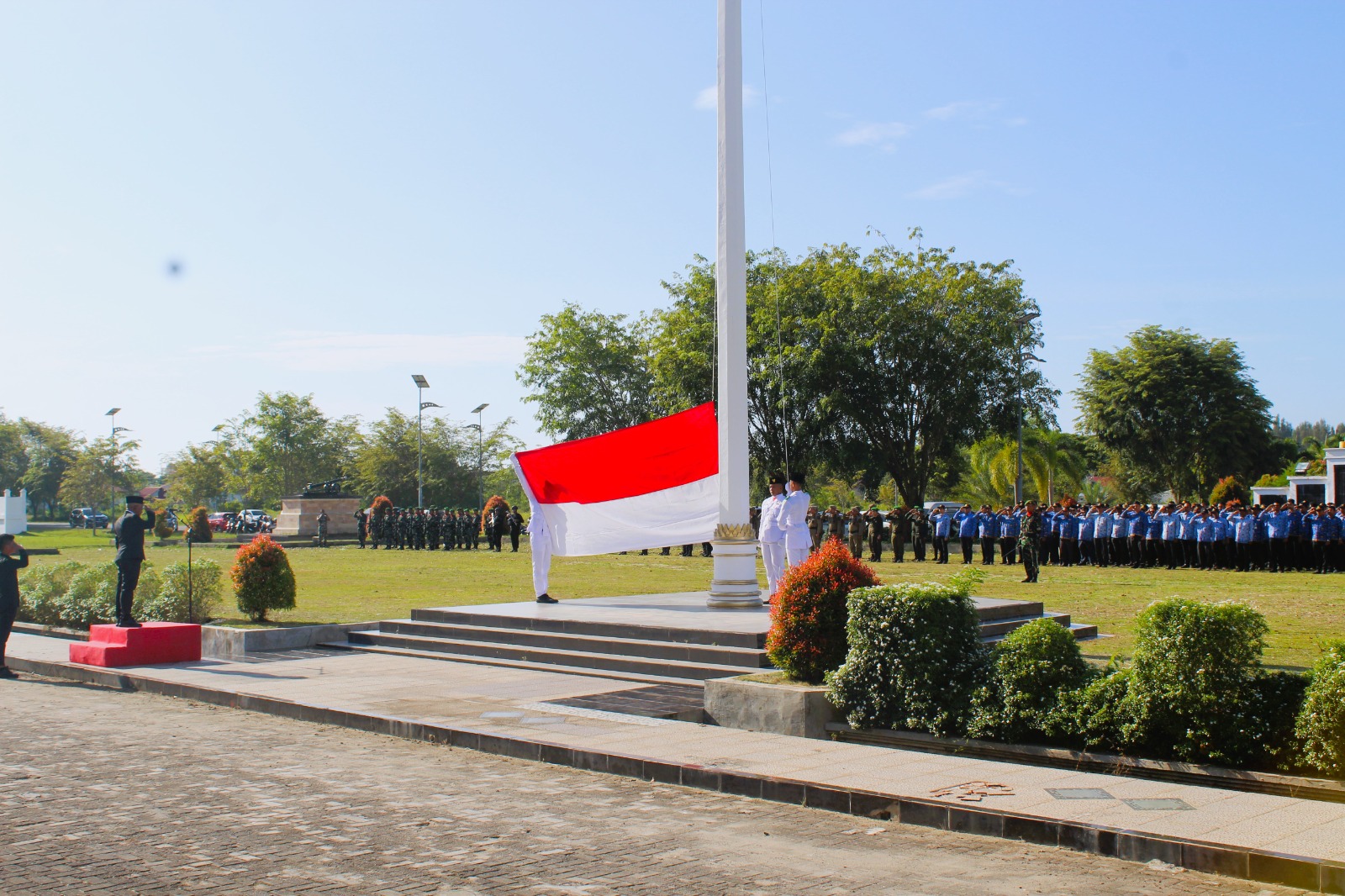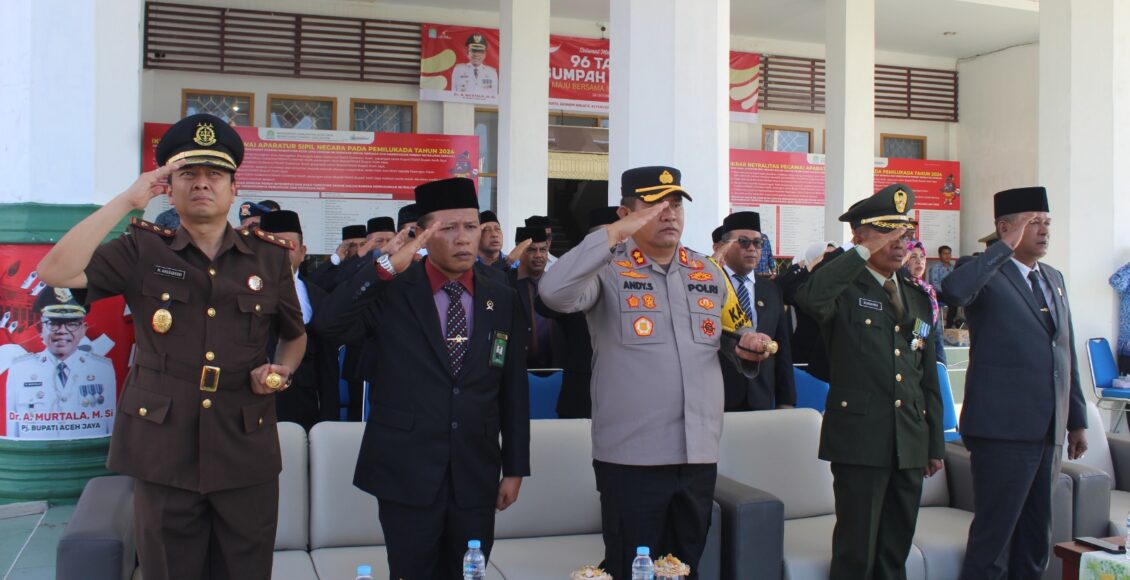 Upacara dihadiri oleh berbagai elemen penting di daerah, antara lain, Pj. Bupati Aceh Jaya, Dr. A. Murtala, M.Si, Ketua DPRK Aceh Jaya, Musliadi.Z, Dandim 0114/Aceh Jaya yang diwakili oleh Kasdim Mayor Caj Sungkono, Kajari Aceh Jaya, Mohammad Anggidigdo, S.H., M.H, Ketua Pengadilan Aceh Jaya, Hasnul Fuad SH. MH, dan Para pelajar dan masyarakat setempat.