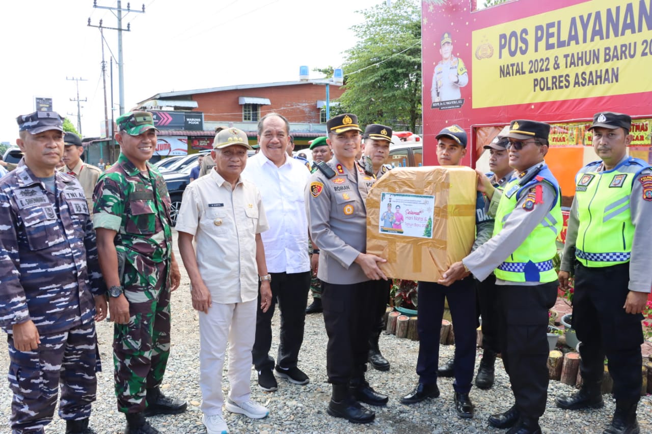Pukul 13.05 wib,Kapolres Asahan bersama Unsur Forkopimda tiba di Pos Pelayanan III (Pulau Raja), Jalinsum Medan – Rantau Prapat Km 216-217 Dusun IV Desa Ledong Barat Kecamatan Aek Ledong. Selanjutnya Kapolres Asahan bersama Unsur Forkopimda melakukan pengecekan dan memberikan arahan kepada personil Pos Yan, dan dilanjutkan Penyerahan Paket beserta makanan dan minuman ringan oleh Kapolres Asahan beserta Bhayangkari dan Unsur Forkopimda kepada Personil Pengamanan Pos Pelayanan III.