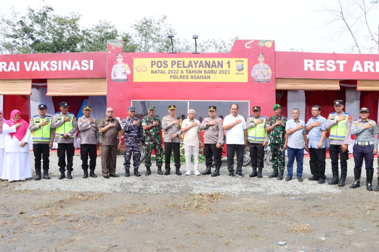 Pada saat dilakukan pengecekan oleh Kapolres Asahan Bersama Unsur Forkopimda diterima oleh petugas yang melaksanakan pengamanan di Pos Pam, Pos Yan dan Pos Terpadu terdiri dari Kapos Pam Personil Polres Asahan TNI.Satpol PP.Dinas Kesehatan.Dinas Perhubungan,Siswa/i Pramuka.(Humas)