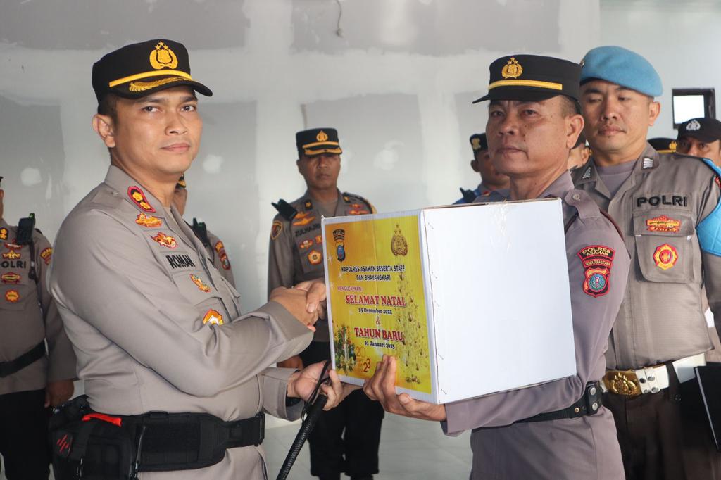 Kapolres Asahan, AKBP Roman Smaradhana Elhaj, SH, SIK, MH Pemberian penghargaan dan Paket Natal dan Tahun Baru ini diberikan sebagai bentuk perhatian kepada personel yang telah mengukir prestasi pada pelaksanaan tugasnya.