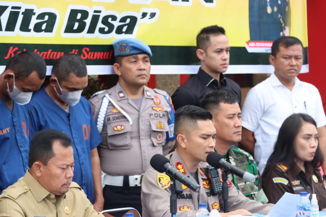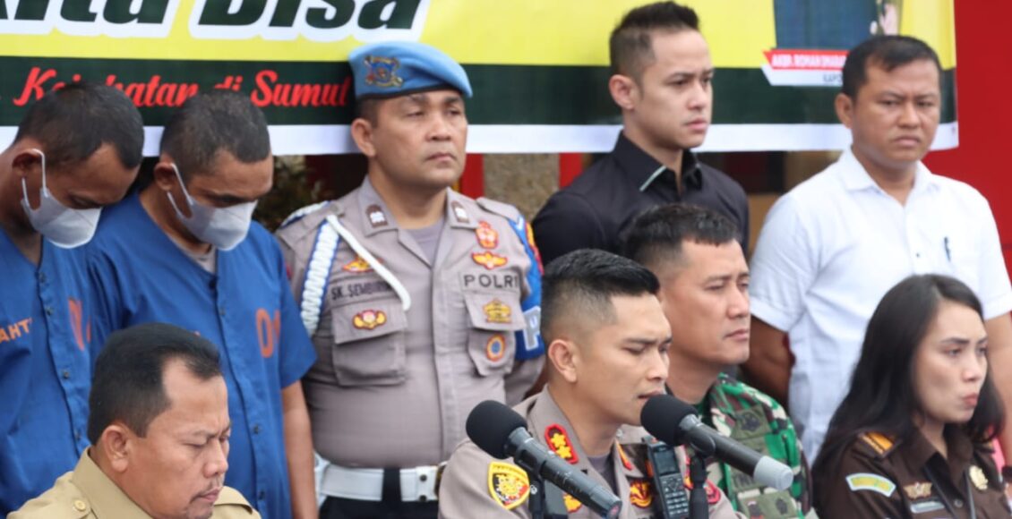 Kapolres Asahan AKBP Roman Smaradhana Elhaj,SH, SIK, MH menggelar Konferensi Pers, dalam pengungkapan kasus tertangkapnya tiga pelaku tindak pidana pencurian dengan pemberatan, Secara bersama sama melakukan pencurian besi rel kreta api sebanyak 50 batang dengan menggunakan mobil Colt Diesel BB 8248 RA di Jalan perlintasan Rel Kereta Api Kelurahan Sentang Kecamatan Kisaran Timur Kabupaten Asahan pada hari Jumat 24 Februari 2023 sekira sekira pukul 01:00 WIB.