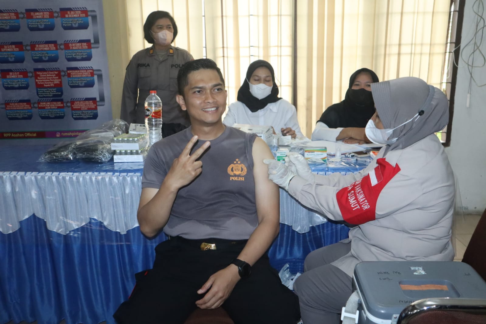 Kapolres Asahan AKBP Roman Smaradhana Elhaj, SH, SIK, MH menyampaikan bahwa Polres Asahan hari ini melaksanakan kegiatan vaksinasi booster ke 2 yang dilaksanakan pada hari ini.