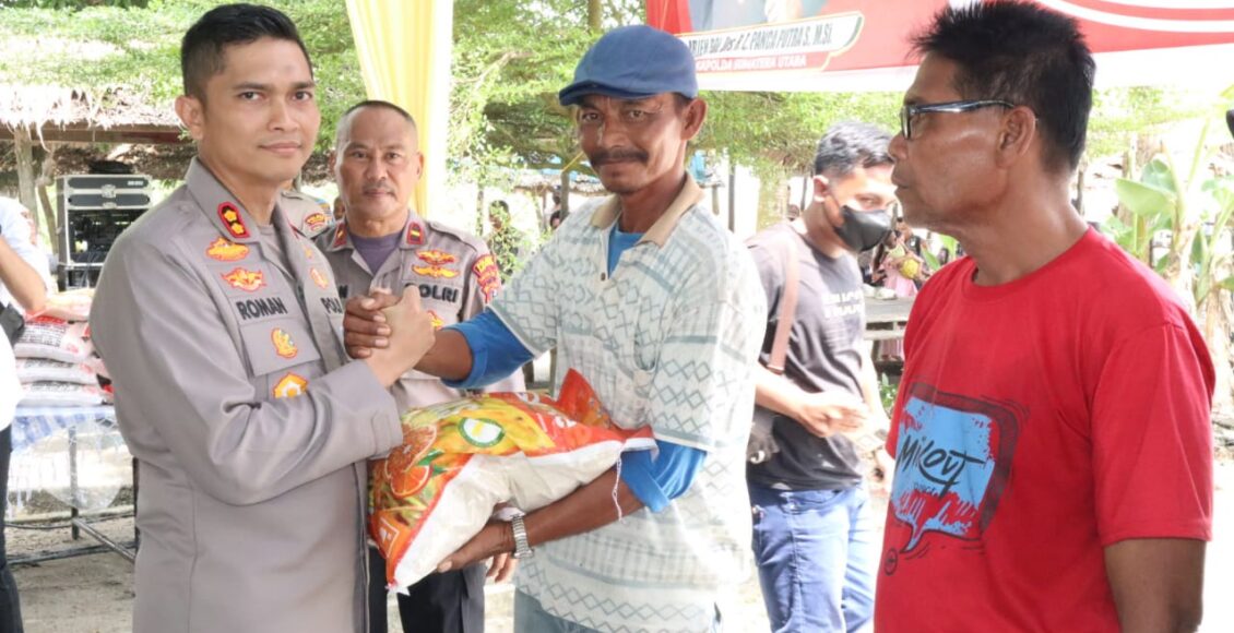 Dalam tatap muka dengan masyarakat, Kapolres Asahan memberikan bantuan beras kepada masyarakat Bagan Asahan bagi yang kurang mampu.(Humas)