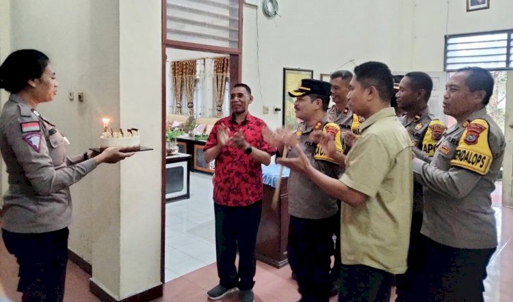 Kapolres Belu bersama Wakapolres dan Pejabat Utama Beri Kejutan Manis di Hari Ulang tahun Uskup Atambua