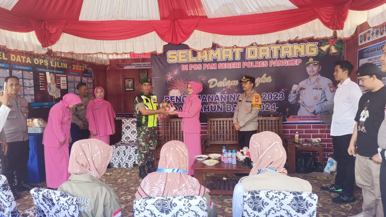 Selain melakukan kunjungan, Kapolres Pangkep bersama Ibu Ketua juga memberikan bingkisan kepada petugas jaga di Pos pengamanan Operasi Lilin 2023