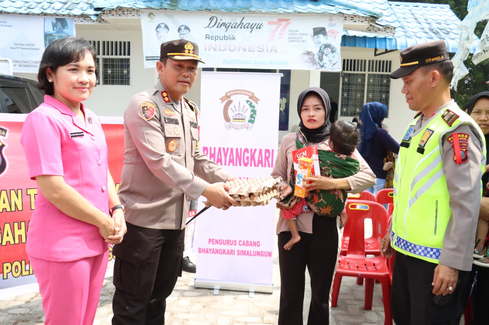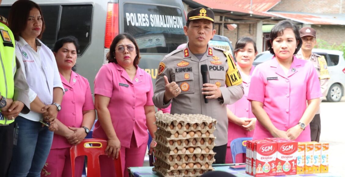 Kapolres bersama Ketua Bhayangkari Cabang Simalungun menyerahkan secara langsung makan tambahan guna mencegah Stunting di Puskesmas Silau Malaha, Kecamatan Siantar, Kabupaten Simalungun, Rabu(19/4/2023) sekira Pkl.10.00 WIB.