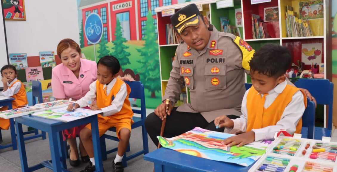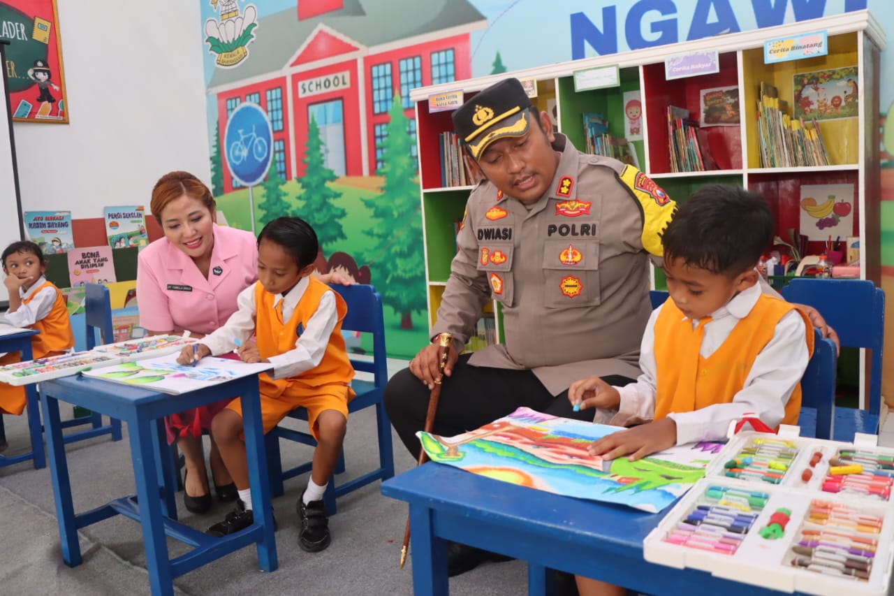 NGAWI,ikagawanews.id – Dalam mendukung program pemerintah sektor pendidikan, Ketua Yayasan Kemala Bhayangkari (YKB) Cabang Ngawi Ny. Famella Dwiasi didampingi Kapolres Ngawi Dwiasi Wiyatputera, S.H., S.I.K., M.H., berbagi cerita penuh kasih sayang di TK Kemala Bhayangkari 54 Jl. JA Suprapto Ngawi.