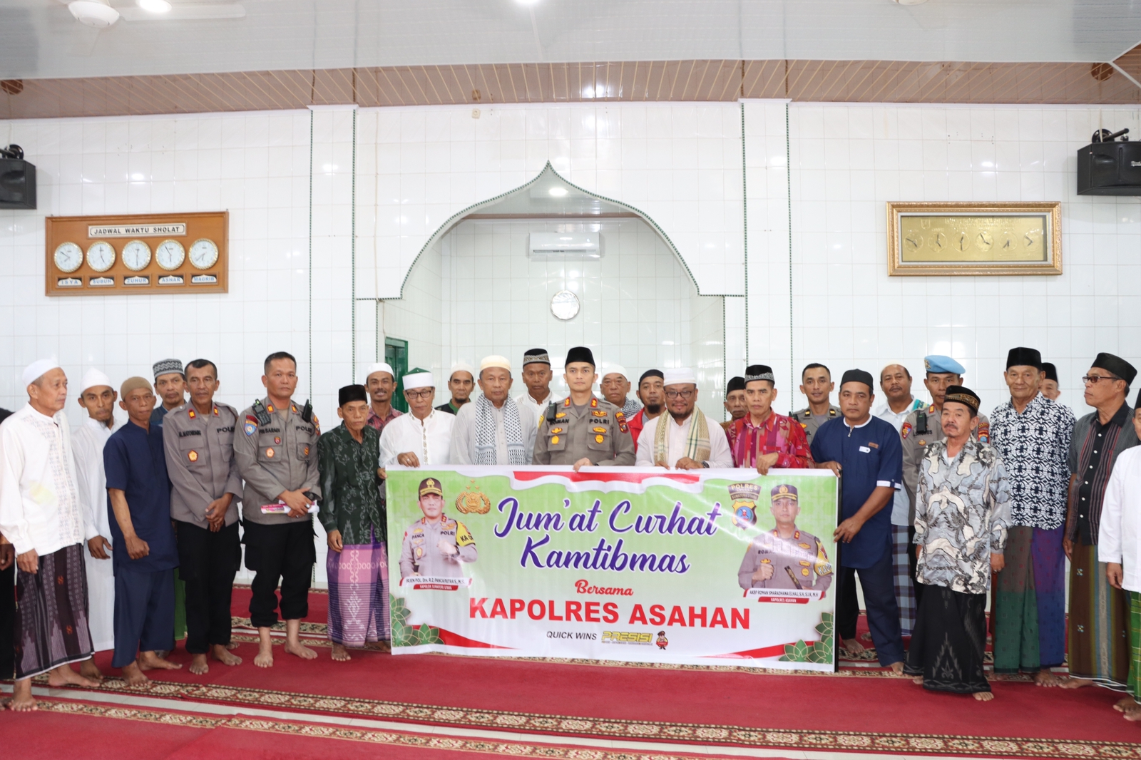 Kapolres Asahan AKBP Roman Smaradhana Elhaj, SH, SIK, MH yang didampingi PJU Polres Asahan melaksanakan Jum’at Curhat kamtibmas di Mesjid Al-Huda Dusun III , Desa Tanjung Alam Kecamatan Sei Dadap Kabupaten Asahan dengan Para Jama’ah, Jama’ah pun memberikan sejumlah aduan dan masukan serta menyampaikan keluhan yang terjadi di seputaran tempat tinggalnya.