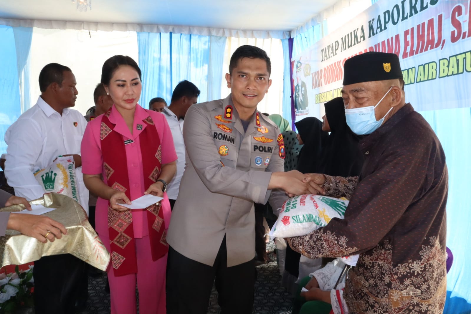 Kedatangan Kapolres Asahan AKBP Roman Smaradhana Elhaj, SH, SIK, MH bersama Ketua Bhayangkari Cabang Asahan Ny Pepin Roman Elhaj beserta rombongan pejabat utama Polres Asahan dan pengurus Bhayangkari langsung disambut Kapolsek Air Batu AKP Rusli Damanik, SH.