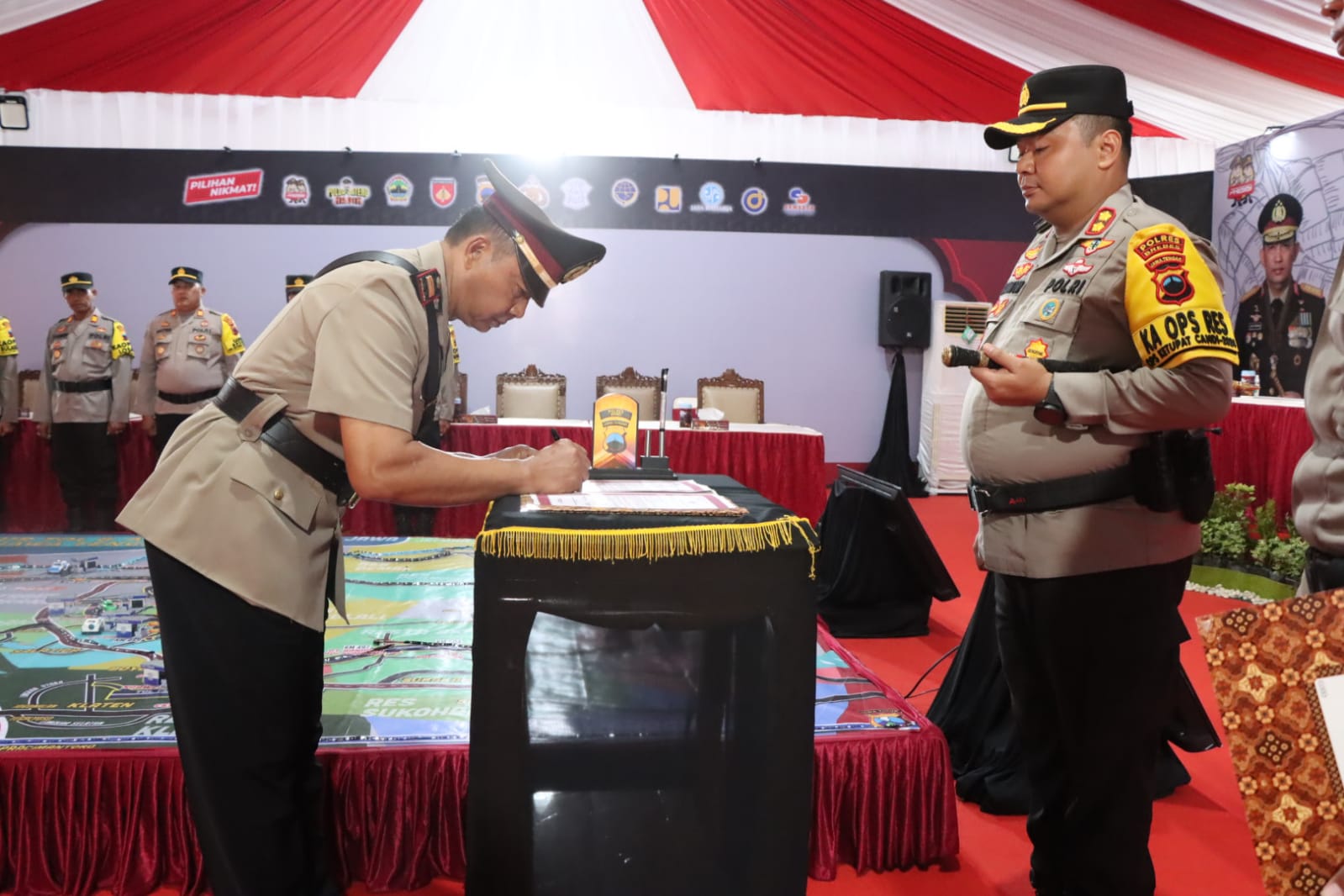 “Hari ini, ditempat ini, disela – sela mengamankan Lebaran, kita bersama – sama menjadi saksi pengukuhan Kapolsek Tanjung Polres Brebes,” kata Kapolres AKBP Guntur.