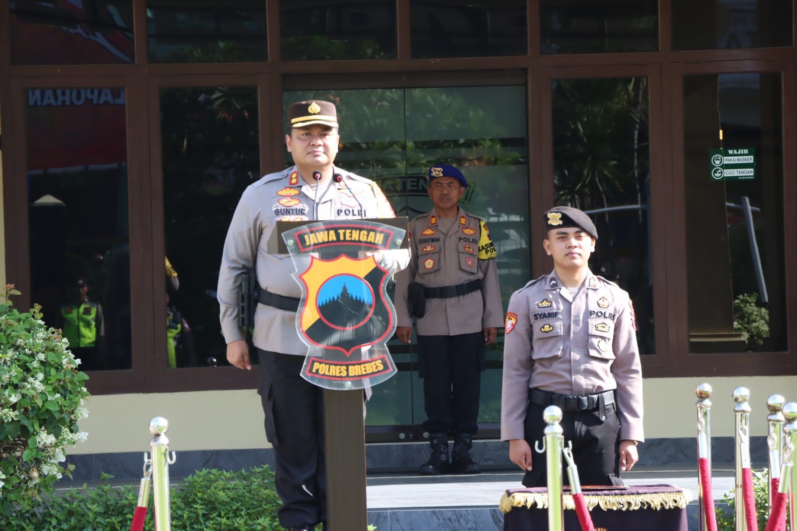 Kapolres Brebes AKBP Guntur M Tariq dalam amanatnya menyampaikan terima kasih dan selamat kepada personel yang mendapat anugerah kenaikan pangkat pengabdian kepada Kanit Reskrim Polsek Bumiayu Polres Brebes.