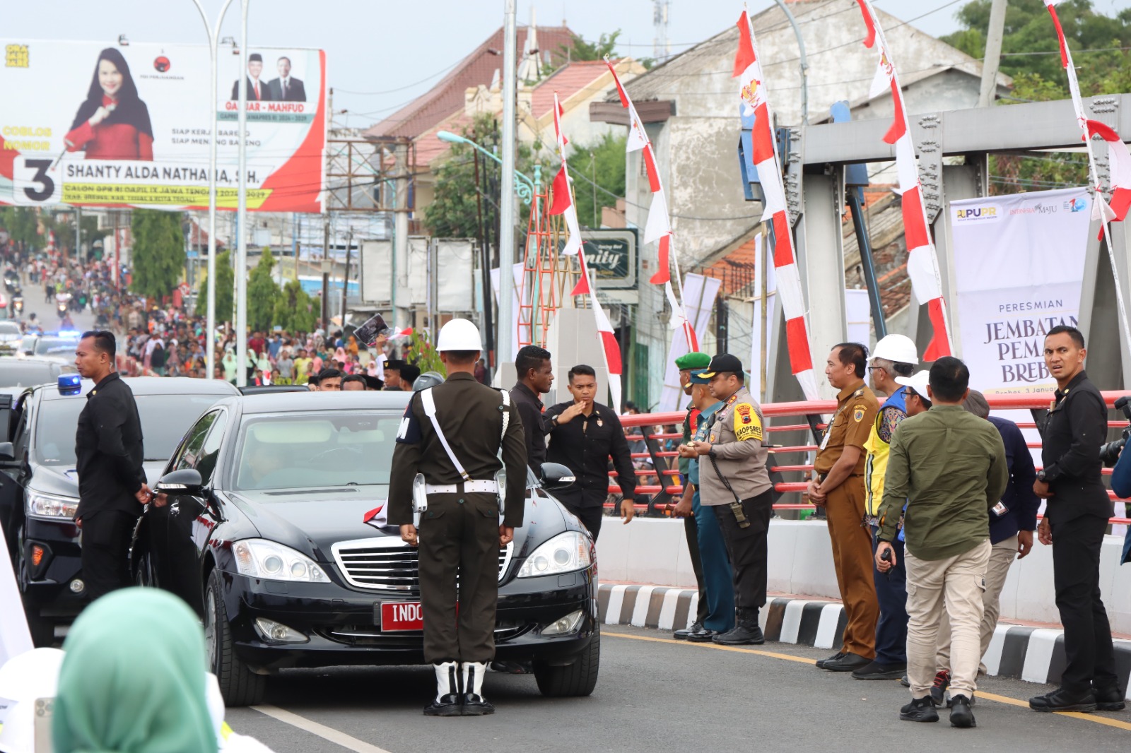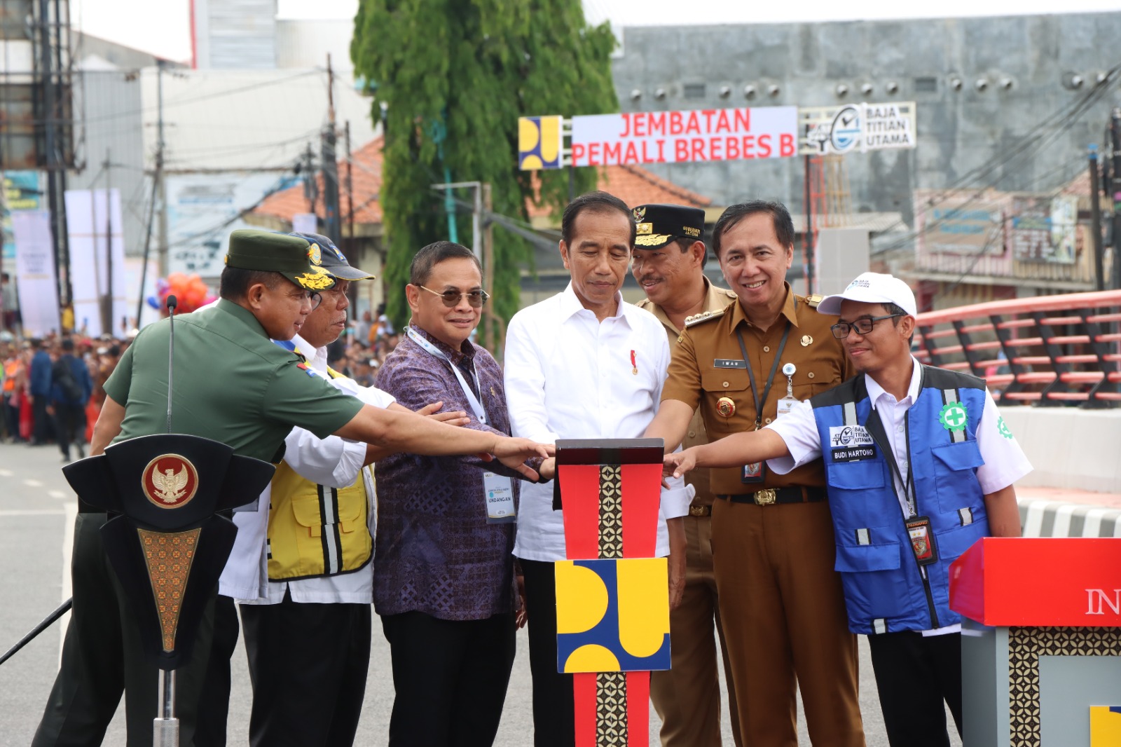 Kunjungan Presiden yang didampingi sejumlah Menteri tersebut dalam rangka meresmikan jembatan Pemali Brebes.