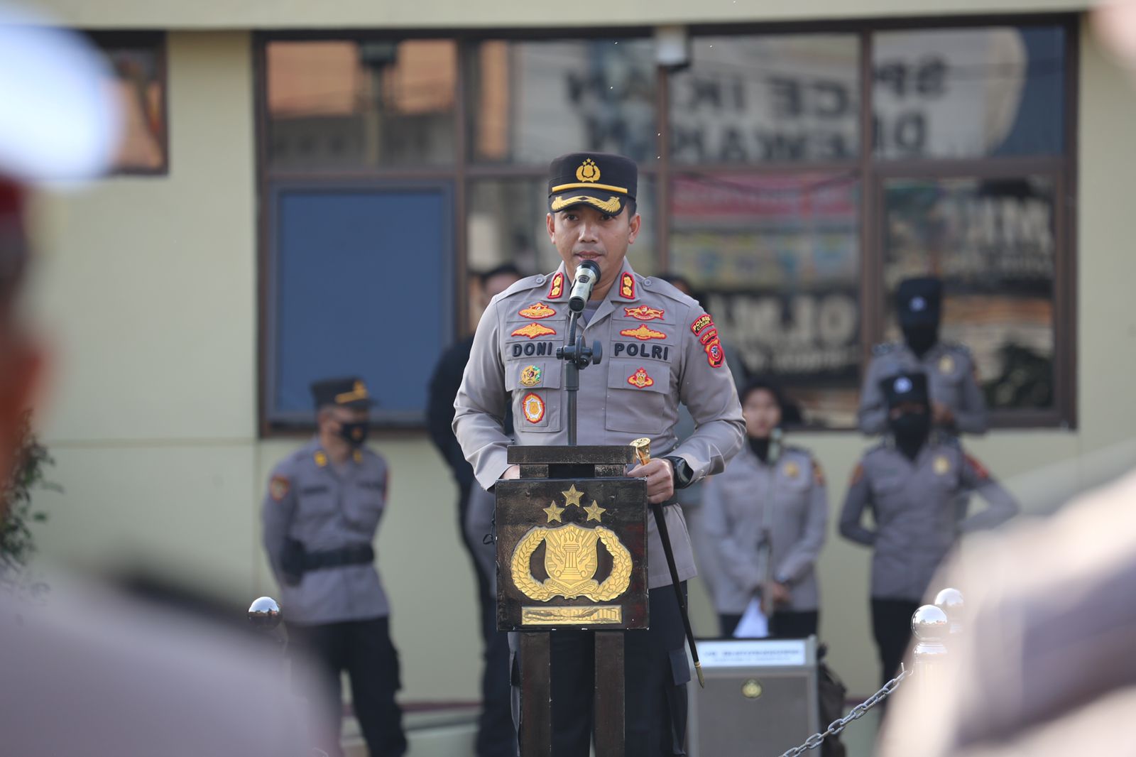 Kapolres Cianjur Memimpin Upacara Kenaikan Pangkat 53 Personel Polres Cianjur Periode 1 Juli 2022