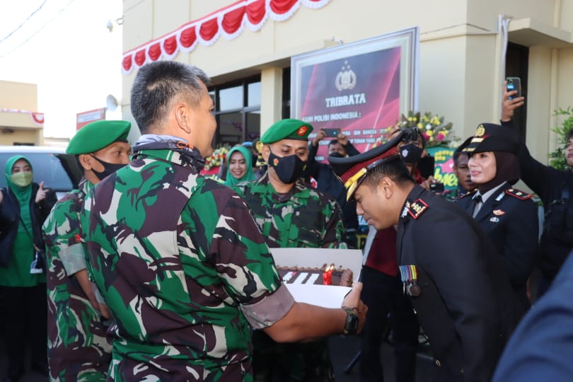 Pangdam III/Siliwangi bersama rombongan memberikan ucapan selamat Hari Bhayangkara ke-76 dengan memberikan yang bertuliskan Hari Bhayangkara ke-76