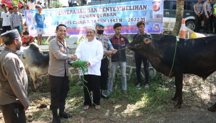 CIANJUR,ikagawanews.id  – Sambut Hari Raya Idul Adha 1443 H/ 2022 M, Kapolres Cianjur AKBP Doni Hermawan, S.H., S.I.K. M.Si. memimpin penyerahan hewan qurban kepada umat muslim di Kabupaten Cianjur, Sabtu (09/07).