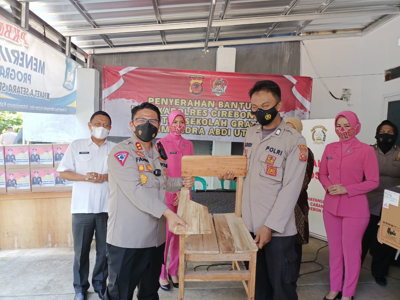 Pada kesempatan itu, Kapolres Cirebon Kota AKBP M Fahri Siregar SH SIK MH didampingi oleh Ketua Bhayangkari Cabang Cirebon Kota Ny Ketty Fahri menyerahkan laptop, kursi, dan sembako. Jelas Kasi humas Polres Cirebon Kota.