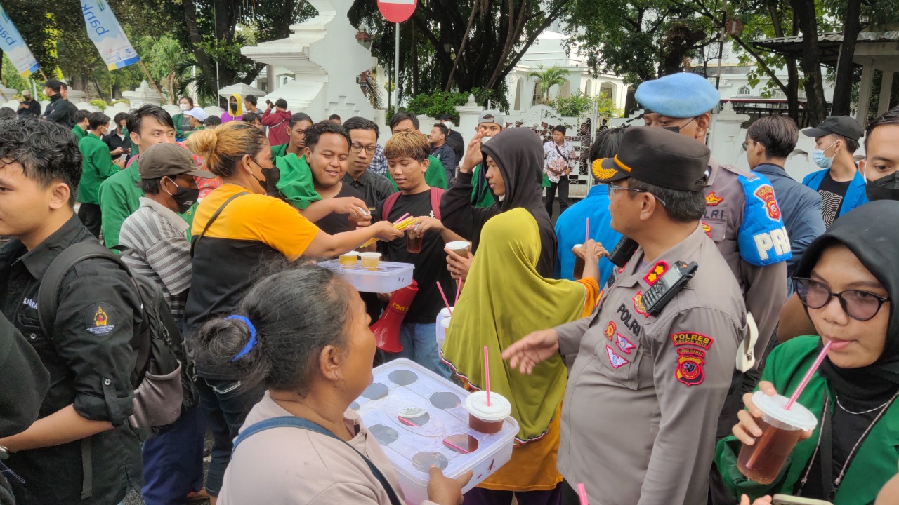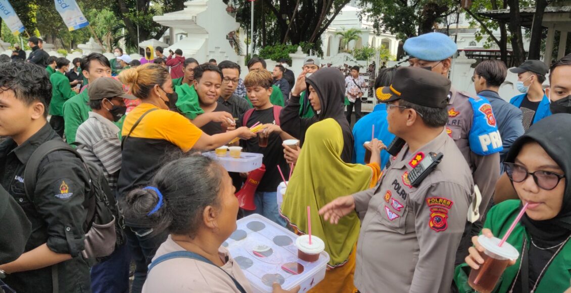 CIREBON KOTA,ikagawanews.id – Kapolres Cirebon Kota AKBP Dr. M. Fahri Siregar, SH.S.IK.MH. secara spontan sekaligus wujud apresiasi terhadap para mahasiswa yang sudah berkomitmen melaksanakan aksi unjuk rasa dengan damai. Mentraktir puluhan minuman segar yang dijual oleh pedagang asongan atau kaki lima yang ada disekitar lokasi unjuk rasa diberikan secara gratis untuk mahasiswa selesai melaksanakan aksinya dengan damai, kamis (8/9/22).