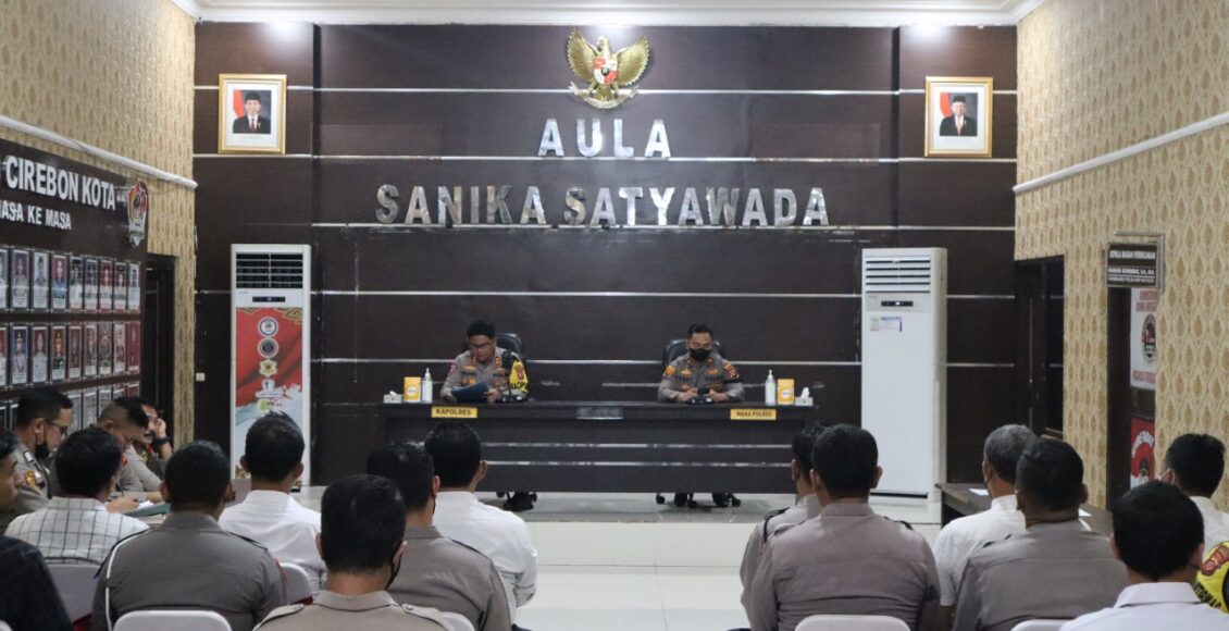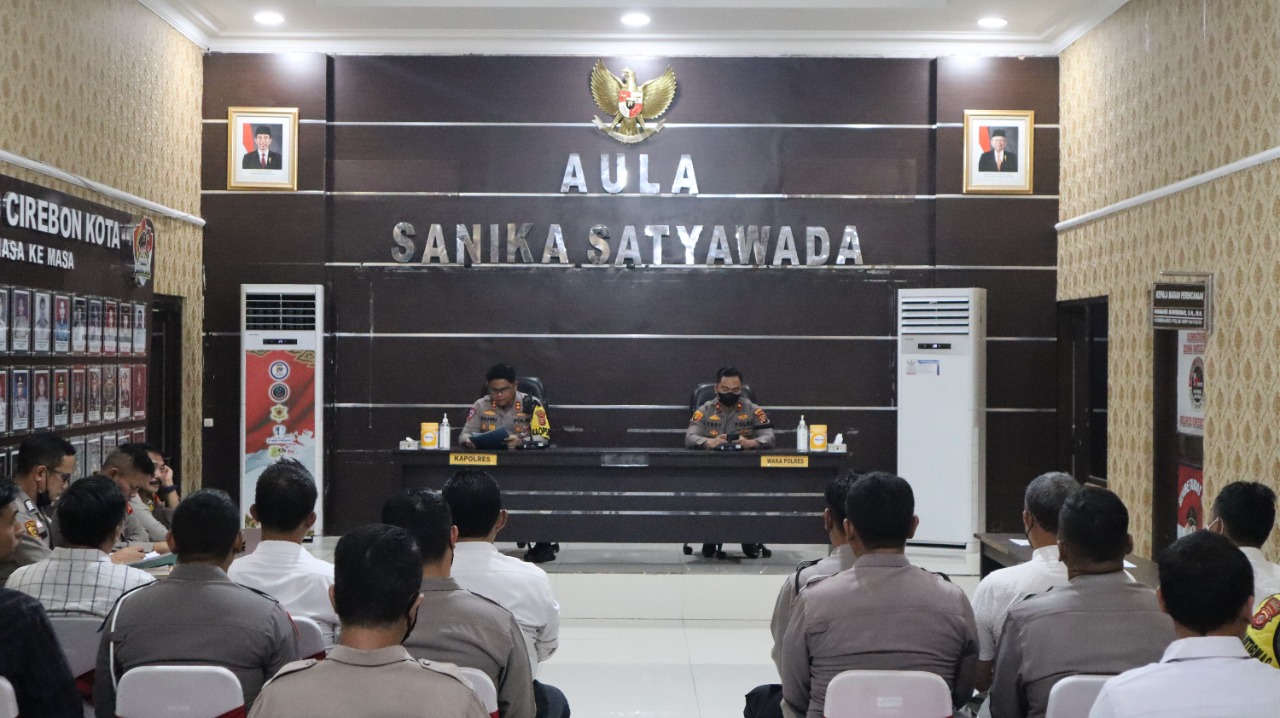 Kapolres Cirebon Kota AKBP Dr. M. Fahri siregar, SH.S.IK.MH didampingi wakapolres Cirebon Kota Kompol Ahmat troy aprio, SH.S.IK. dihadapan para personel yang terkena mutasi belum lama ini diberikan arahan. Bertempat di Aula Sanika Satyawada Polres Cirebon Kota. Selasa (4.10.22).