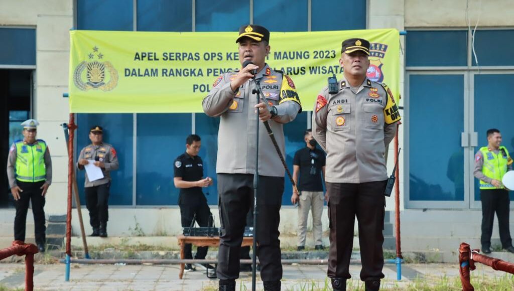 Cilegon,ikagawanews.id – Kapolres Cilegon Polda Banten AKBP Eko Tjahyo Untoro dalam Apel Pergeseran Pasukan Pengamanan Arus Wisata Pantai Anyer Cinangka Didaerah Hukum Polres Cilegon agar kedepankan Koordinasi dan Kolaborasi antar Satgas dan Stakeholder Terkait yang terlibat pengamanan Ops Ketupat Maung 2023 Didaerah Hukum Polres Cilegon, Minggu, (23/04).
