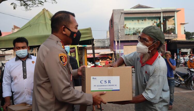 CILEGON,IKAGAWANEWS.ID – Dalam rangka memberikan bantuan kepada Masyarakat (Pedagang) terdampak Covid19 didaerah hukum Polres Cilegon Polda Banten Kapolres Cilegon AKBP Sigit Haryono, S.ik, SH melaksanakan Baksos di Bundaran Perumnas dengan didampingi Kapolsek Cibeber, Kasat Intelkam, Kasat Lantas, Kasat Binmas dan Kasihumas, Cibeber, Kota Cilegon. Selasa, (3/8/2021).
