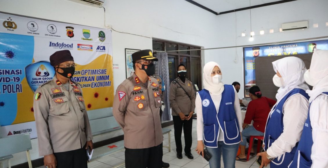 Gerakan Vaksinasi Nasional Covid 19 diperuntukan bagi masyarakat umum wilayah Cirebon, Pelajar dan Mahasiswa. Dengan menyediakan vaksin jenis Cinovac dosis satu dan dua. Gelar acara gerakan vaksinasi Nasional di Klinik Pratama Dokes Polres Cirebon Kota hari ini dengan menargetkan menyasar 500 peserta yang diprioritaskan untuk masyarakat umum dan pelaku UMKM. Tambah Kasi humas Polres cirebon kota.