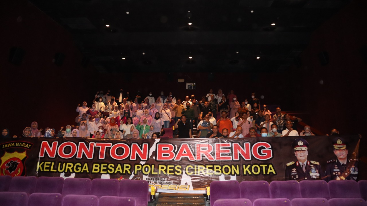 Kapolres Cirebon Kota AKBP Dr. M. Fahri siregar, SH.S.IK.MH. menyampaikan “Ya. Benar. Saat ini kami mengadakan nonton bareng (nobar) bersama forkopimda dengan mengajak keluarganya yaitu anak dan istrinya. Demikian pula dengan para PJU dan personel Polres Cirebon Kota”. Ungkapnya didampingi Wakapolres Cirebon Kota Kompol Ahmat Troy Aprio, SH.S.IK.