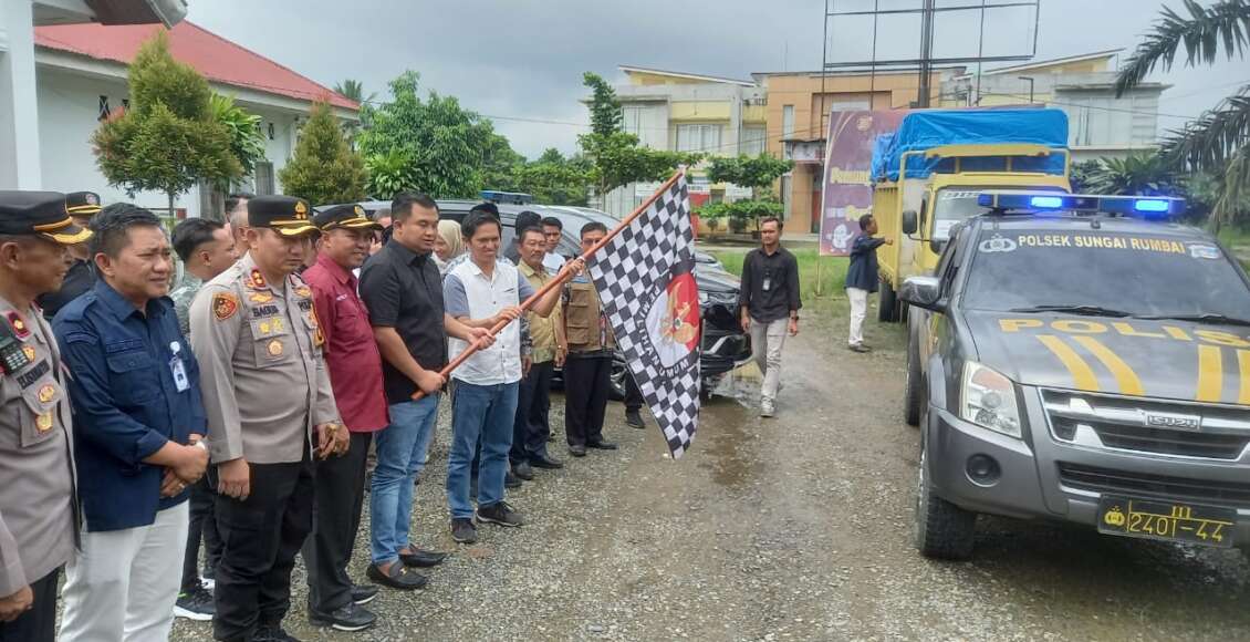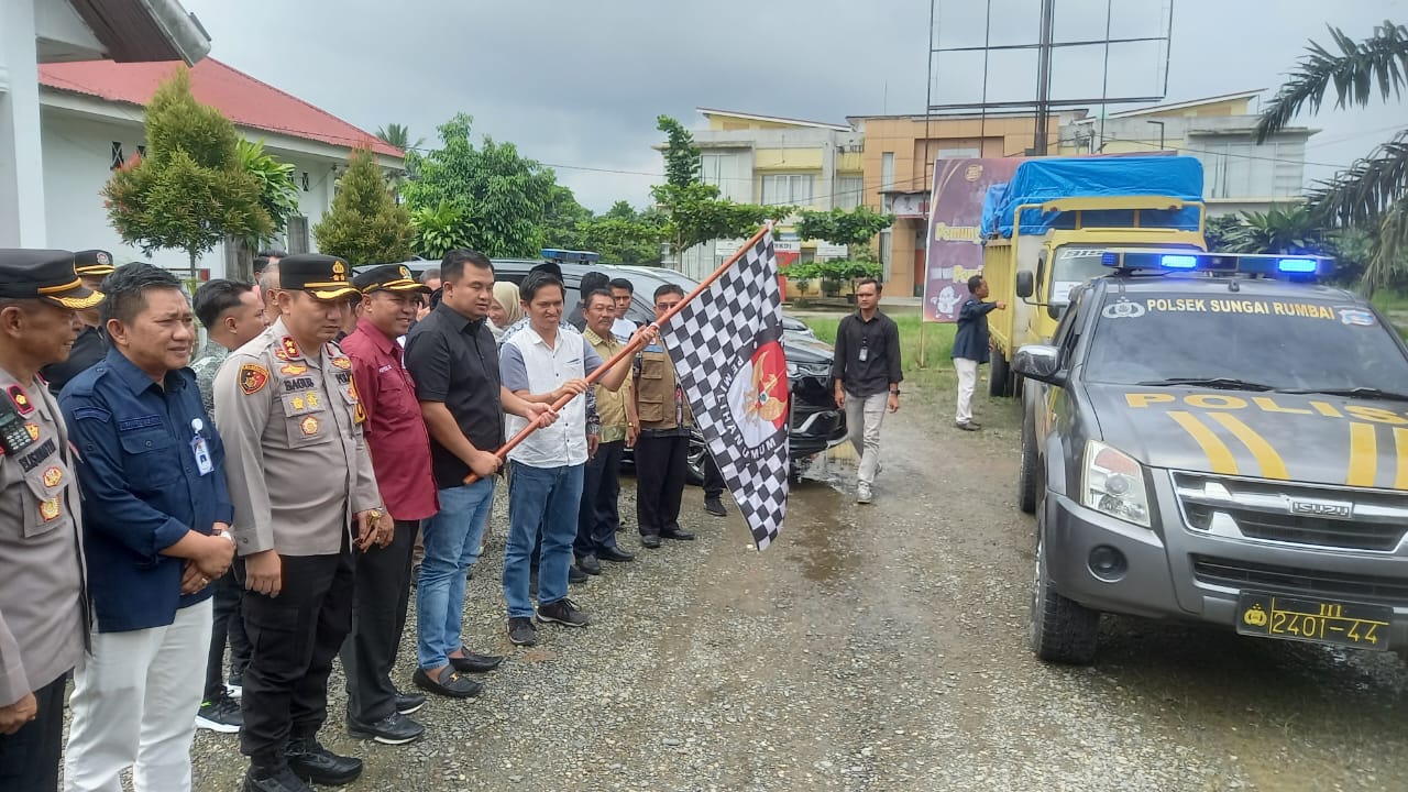 Bupati Dharmasraya Sutan Riska Tuanku Kerajaan secara resmi melepas pendistribusian logistik Pemilu 2024 dari Gudang KPU ke empat PPK, termasuk PPK Asam Jujuhan, PPK Tiumang, PPK Sungai Rumbai, dan PPK Koto Besar.
