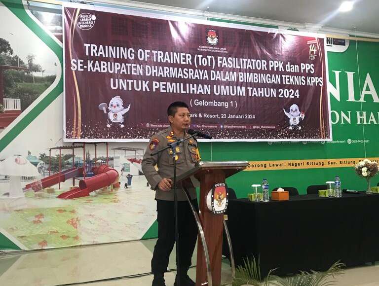 Dharmasraya,ikagawanews.id – Kapolres Dharmasraya ,AKBP Bagus Ikhwan, S.I.K, M.H, menghadiri kegiatan Training Of Trainer (ToT) Fasilitator PPK dan PPS di Aula Pertemuan Alinia Park dan Farm Jorong Lawai, Nag. Situng, Kecamatan Sitiung, Kabupaten Dharmasraya pada Selasa, 23 Januari 2024, pukul 09.30 WIB.