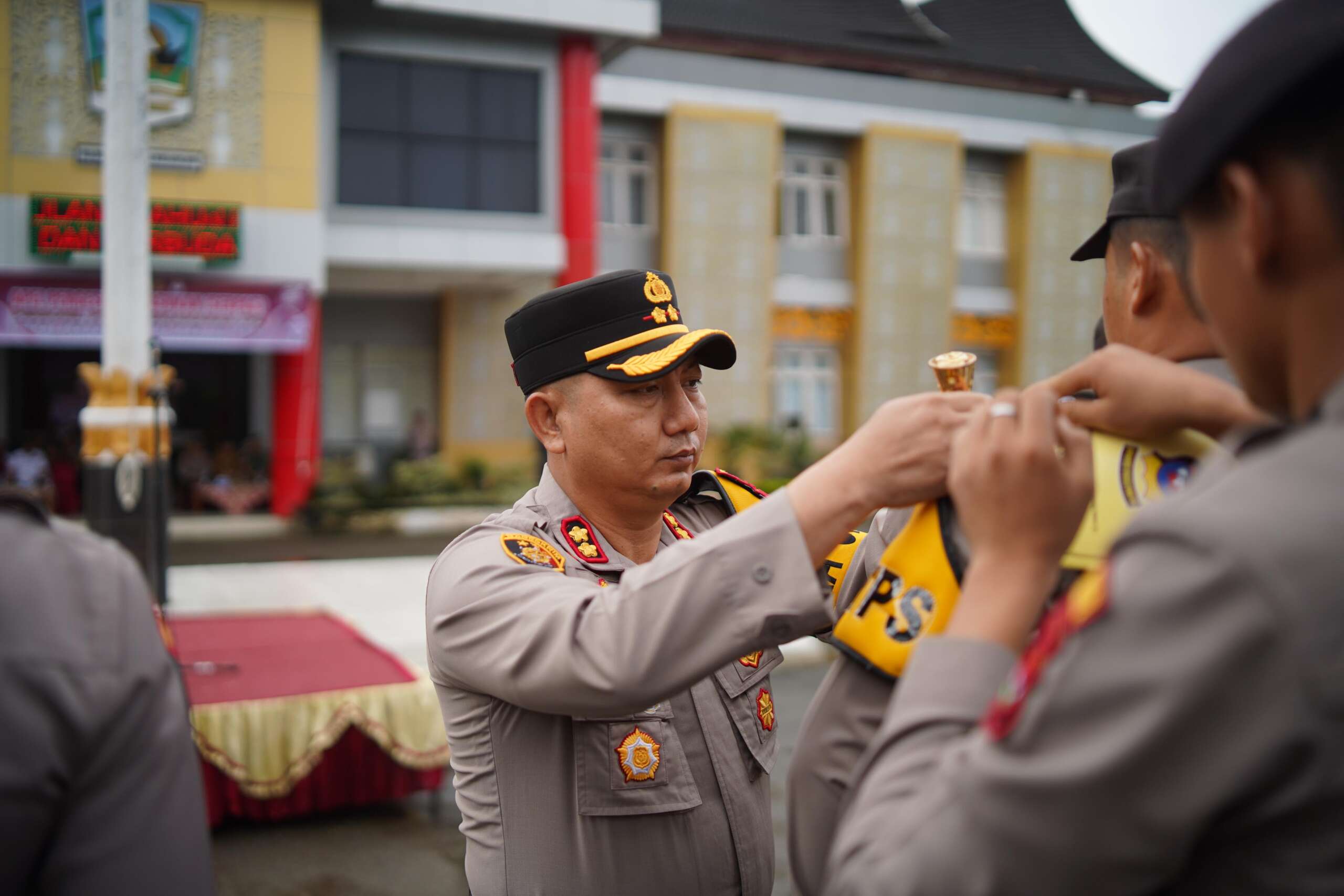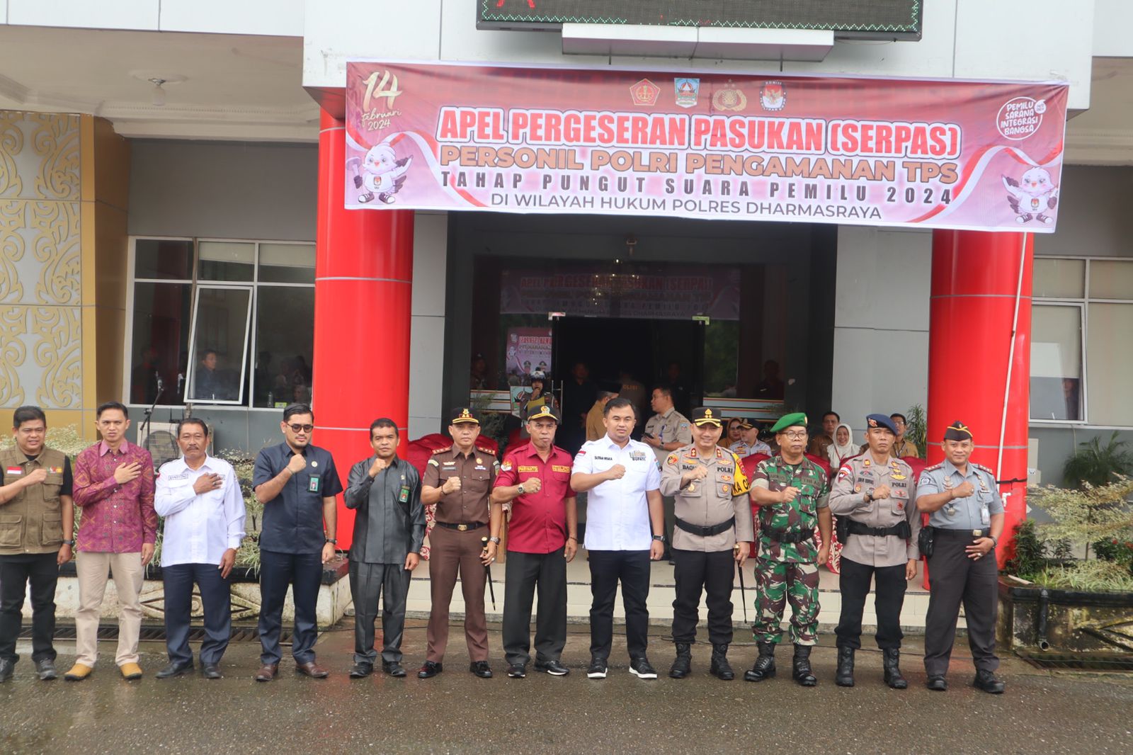 Dalam apel serpas ini, Kapolres Dharmasraya secara simbolis memasangkan Ban Lengan kepada perwakilan personil Pam TPS. Setelah itu, bersama Bupati, Ketua DPRD, Kajari, Ketua KPU, dan Ketua Bawaslu, Kapolres melakukan pemeriksaan pasukan untuk memastikan kesiapan pengamanan TPS.