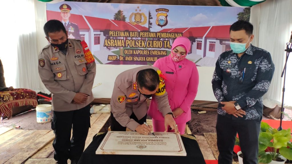 Kapolres Enrekang AKBP Andi Sinjaya dalam sambutannya pembangunan asrama ini di bangun untuk mengakomodir kebutuhan perumahan bagi personel Polsek Curio Polres Enrekang.