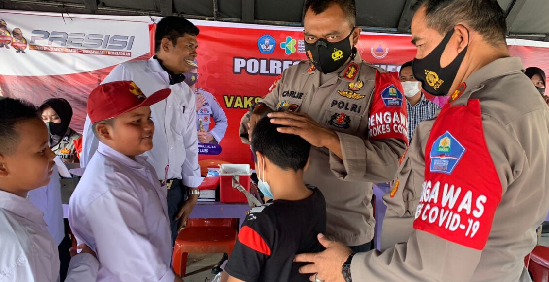 Bertempat di Gerai Vaksin Presisi Polres Gayo Lues yang berada di depan Pos Lantas Polres Gayo Lues Kapolres dengan didampingi oleh Waka Polres Kompol Mhd.Rasid,S.H beserta Pengurus Bhayangkari Polres Gayo Lues memberikan Hadiah berupa Permen Lolipop dan Tas beserta Alat Tulis kepada anak-anak usia 6-11 tahun yang di Vaksin di gerai Vaksin Presisi.