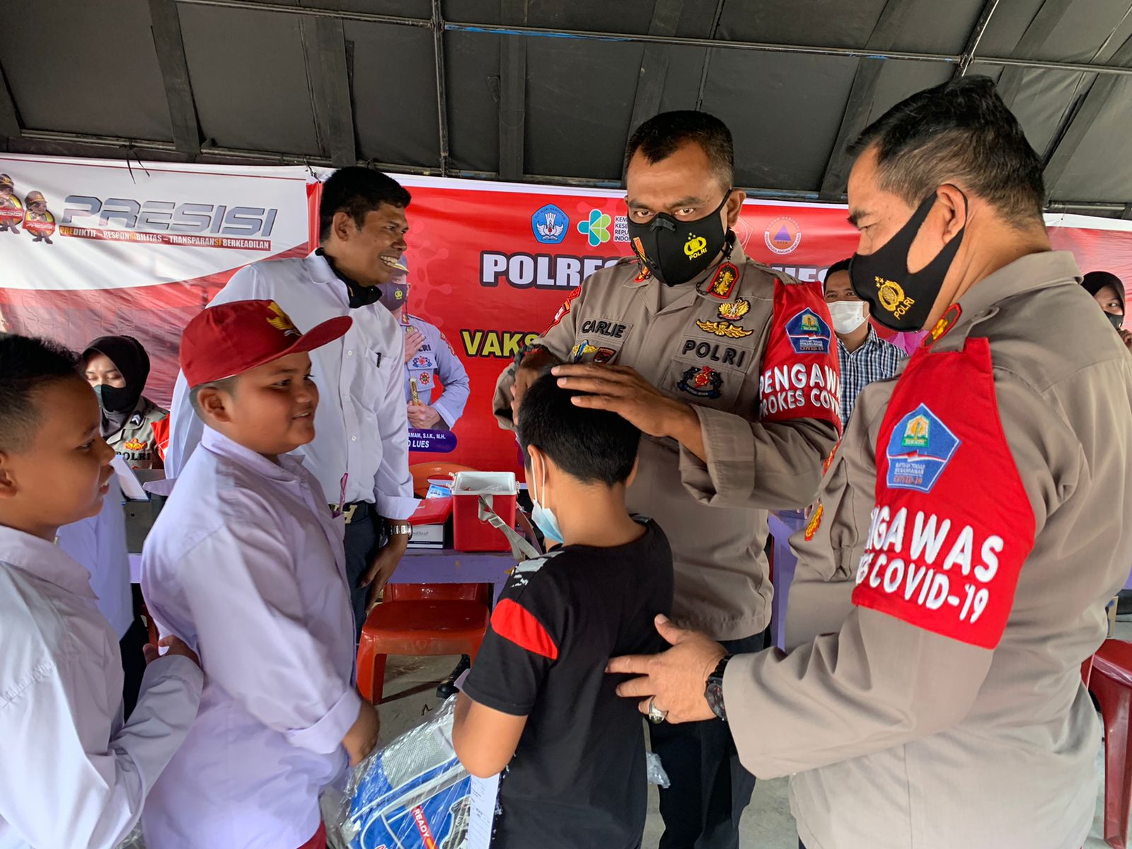 Bertempat di Gerai Vaksin Presisi Polres Gayo Lues yang berada di depan Pos Lantas Polres Gayo Lues Kapolres dengan didampingi oleh Waka Polres Kompol Mhd.Rasid,S.H beserta Pengurus Bhayangkari Polres Gayo Lues memberikan Hadiah berupa Permen Lolipop dan Tas beserta Alat Tulis kepada anak-anak usia 6-11 tahun yang di Vaksin di gerai Vaksin Presisi.