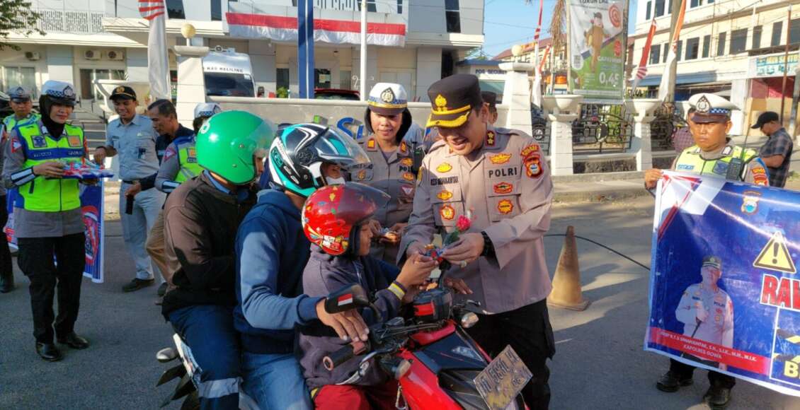 Dalam operasi ini, pemotor yang tertangkap tidak menggunakan helm standar SNI diberikan helm gratis sebagai bentuk peringatan. Sementara itu, pengendara roda empat yang tidak menggunakan sabuk pengaman diberi cokelat dan bunga sebagai pengingat untuk lebih memprioritaskan keselamatan.