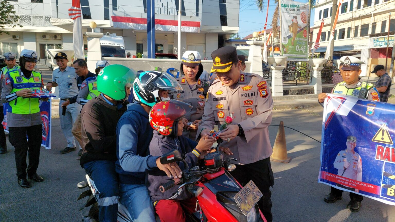 Kegiatan tersebut dipimpin langsung oleh Kapolres Gowa, didampingi oleh Wakapolres KOMPOL Soma Miharja, S,Sos, MM, serta beberapa perwira Satlantas Polres Gowa, termasuk Kasat Lantas AKP Ida Ari Made Ayu. Anggota Polwan Polres Gowa juga turut serta dalam memberikan edukasi kepada pengguna jalan.