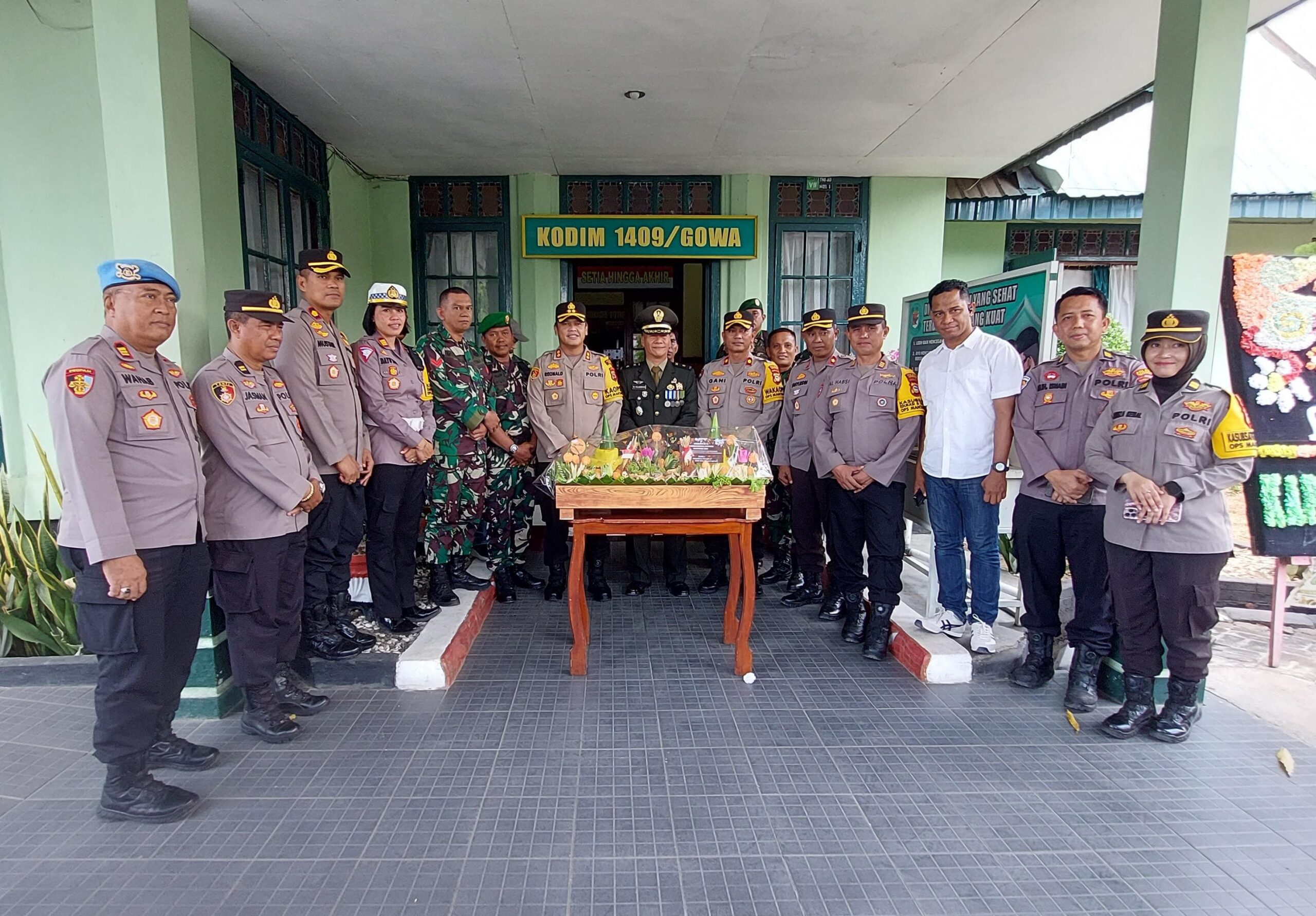 Momen tersebut berlangsung penuh keakraban, menandakan sinergitas yang kuat antara TNI dan Polri dalam menjaga keamanan dan ketertiban di wilayah Kabupaten Gowa.