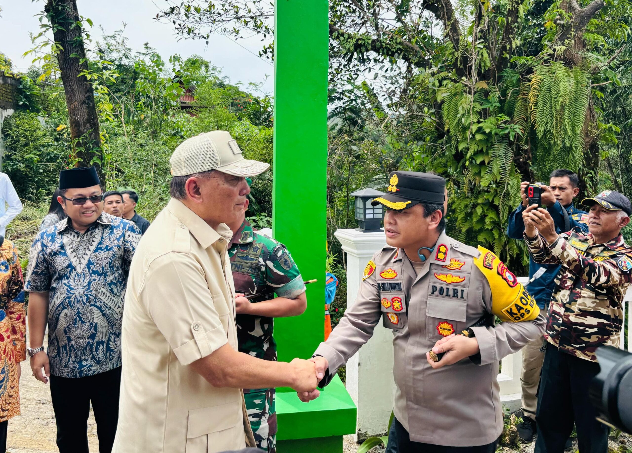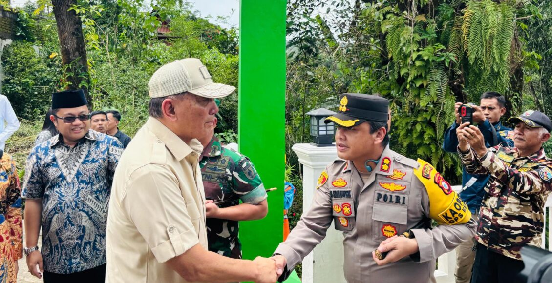 GOWA,ikagawanews.idKapolres Gowa AKBP R.T.S Simanjuntak, S.H., S.I.K., M.M., M.I.K. bersama Forum Koordinasi Pimpinan Daerah (Forkopimda) Kabupaten Gowa menyambut kedatangan Menteri Pertahanan Republik Indonesia, Jenderal (Purn.) Sjafrie Sjamsoeddin, beserta rombongan dalam kunjungan kerja ke Lembaga Pendidikan Sekolah Calon Tamtama (Lemdik Secata A) Malino, Kabupaten Gowa, Jum’at (04/6/2025).