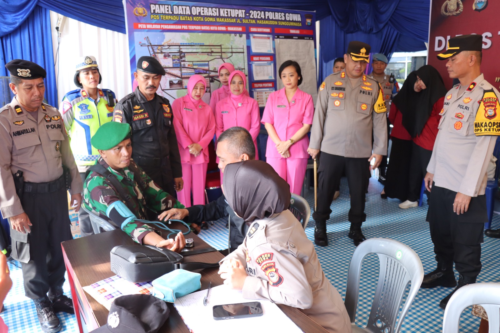 GOWA,ikagawanews.id – Kapolres Gowa, AKBP R.T.S Simanjuntak, S.H., S.I.K., M.M., M.I.K, didampingi oleh Wakapolres Gowa KOMPOL Gani, S.H,M.H dan para PJU serta Ketua Bhayangkari Cabang Gowa, Ny. Lidya Reonald dan Wakil Ketua Bhayangkari Cabang Gowa, Ny. Erna Gani, mengunjungi Pos Terpadu Operasi Ketupat 2024 di Batas Kota Makassar-Gowa.