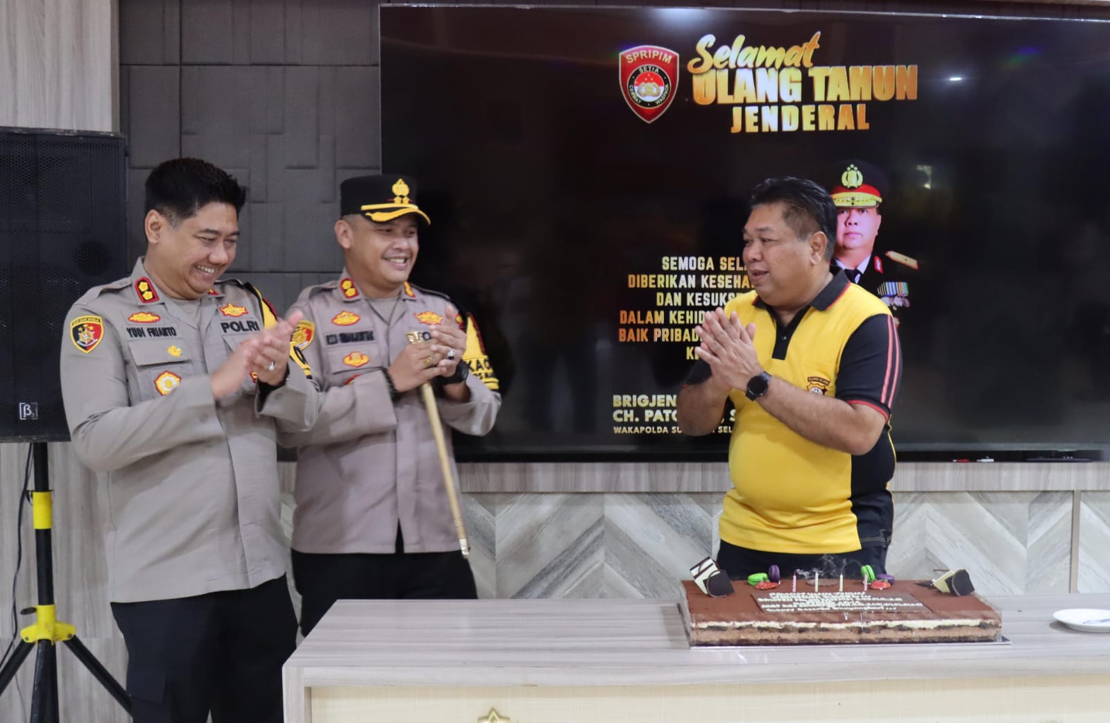 Wakapolda Sulsel, dalam suasana akrab, mengucapkan terima kasih atas kejutan yang diberikan oleh Kapolres Gowa dan PJU. Acara tersebut menciptakan momen berkesan dan memperkuat solidaritas di kalangan Kepolisian Polda Sulsel.