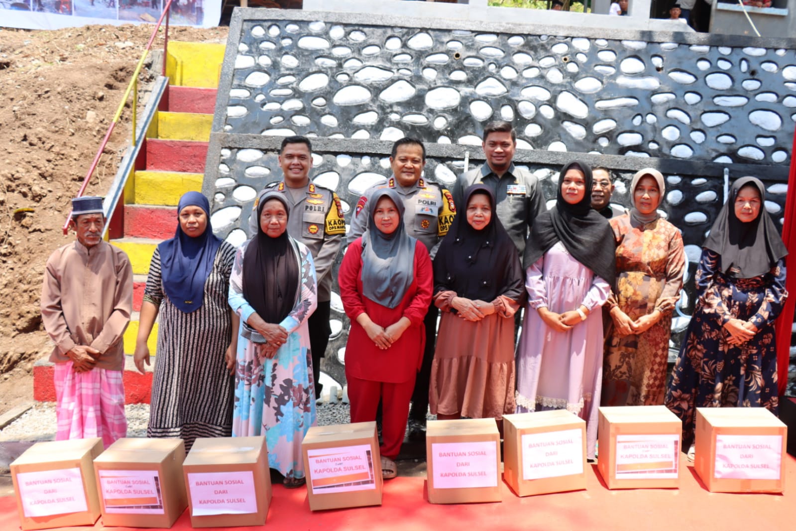 Tak hanya peresmian fasilitas, Kapolda Sulsel juga berbagi sembako kepada warga sekitar, menunjukkan kepedulian Polri terhadap kesejahteraan masyarakat dalam acara yang penuh makna ini.(Humas Polres Gowa)